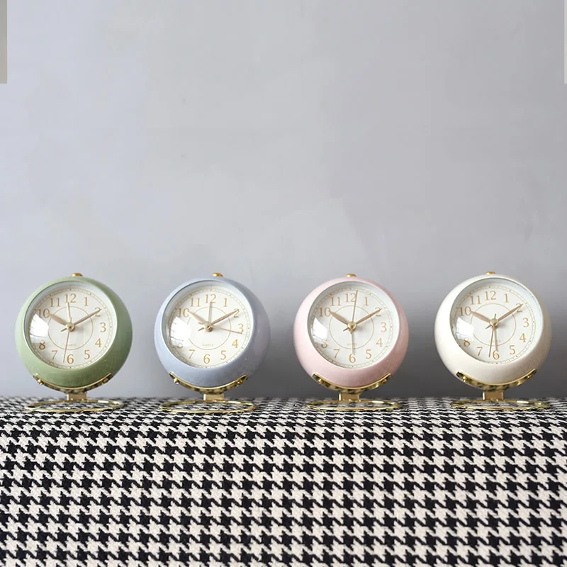 4-дюймовый Vntage роскошный скандинавский стиль бесшумный простой металлический стол тихий будильник часы с ночником 4 цвета
