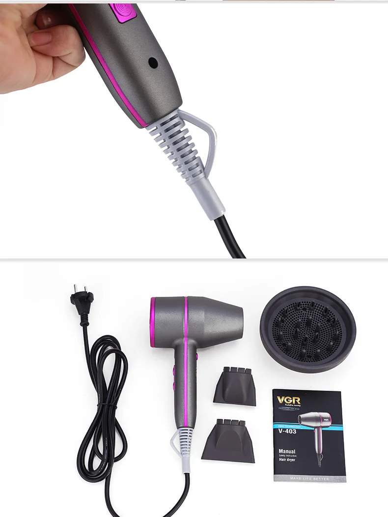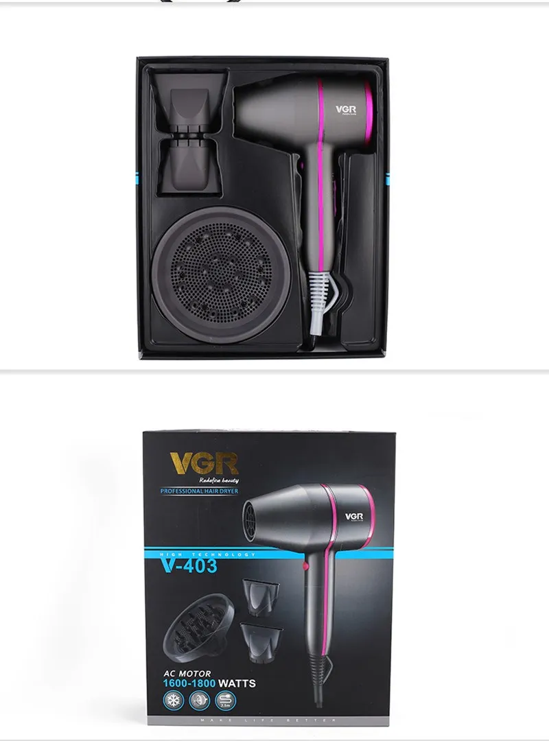 Описание: Вес: 624 г Размер: 20*13,5*17,5 см Выходная мощность: 1800-2000 Вт Мощность: 220-240 В Частота: 50/60 Гц Особенности: 3 настройки нагрева, 2 настройки скорости и один coo Профессиональный фен для волос Передовые технологические дизайн Мощный Фен с двигателем переменного тока 1800-2000 Вт Равномерное распределение тепла Эргономичная сбалансированная и тихая производительность Высушите волосы равномерно и быстро 2,5 м профессиональный шнур Кнопка подачи холодного воздуха Устройство защиты от перегрева Посылка: 1 * фен для волос 1 * концентрированный сопла 1 * диффузии сопла 1 * Руководство по использованию