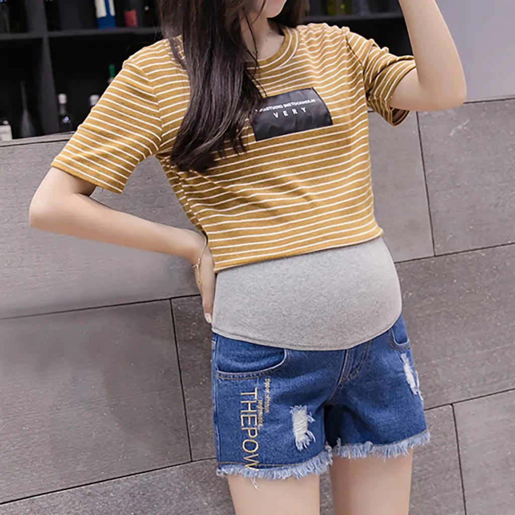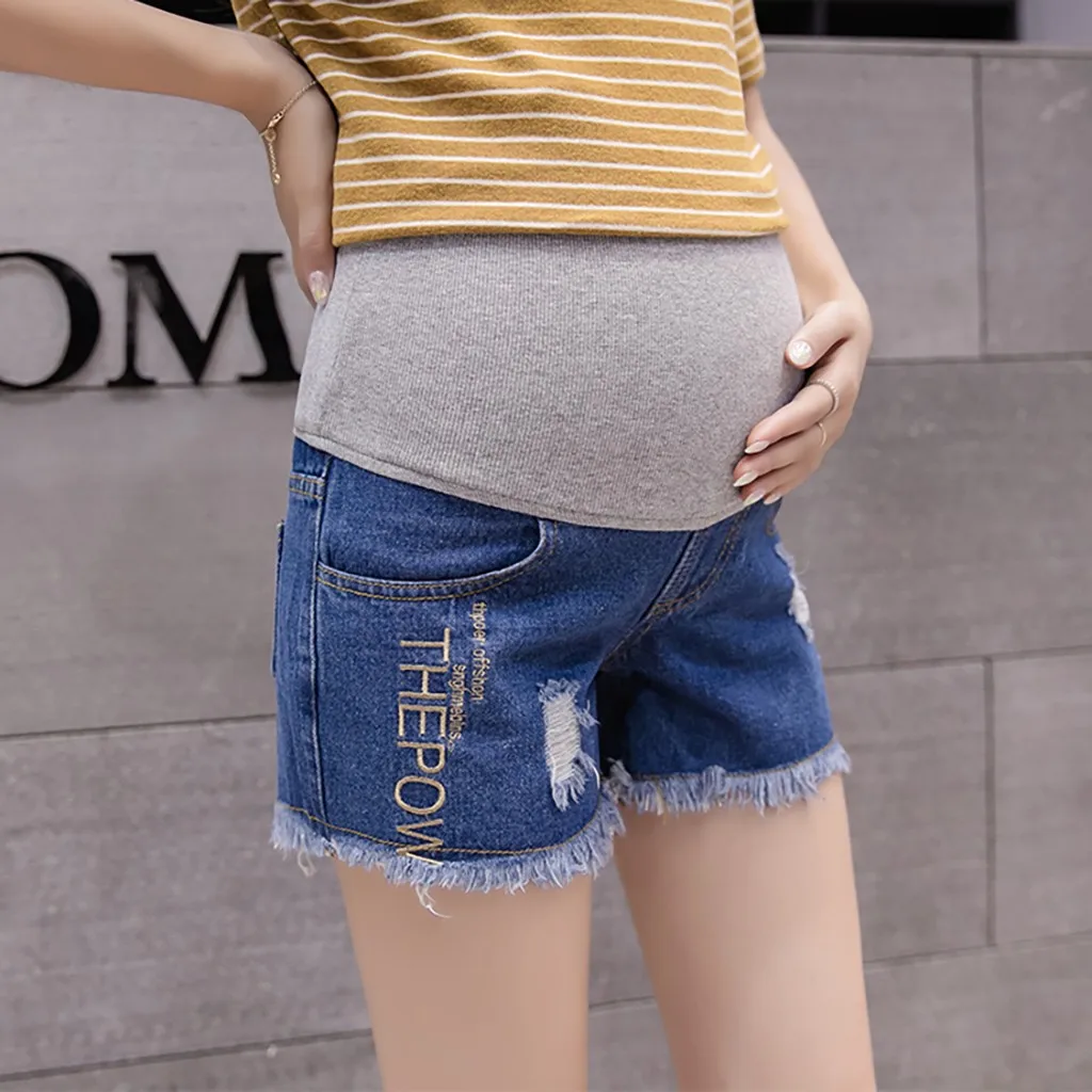2019 Summer Letter printing Loose Hole Pants Stretch Wear Casual Maternity Shorts maternity jeans pants for pregnancy