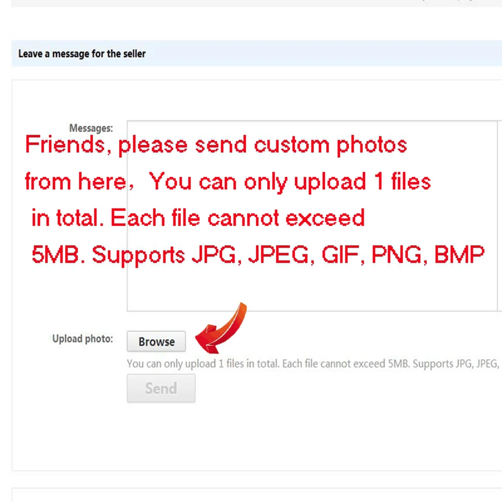 Dear friends, make sure send your custom photo to us after you ordering,so as to delivery in time, you can upload the picture with order messages, please keep your picture clear and complete, many thanks ...