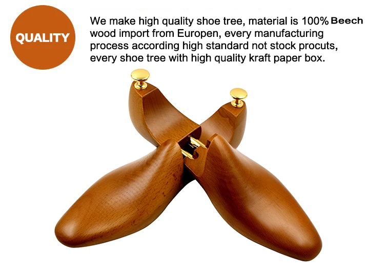 we make high quality shoe tree,material is 100%Beech wood import from american,every manufacturing process according high standard not stock procuts,every shoe tree with hgih quality kraft paper box.
