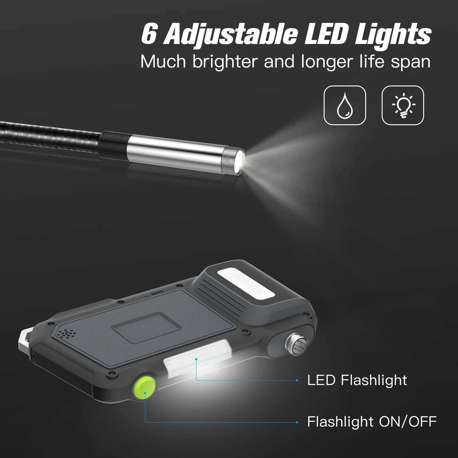 Компактная Структура: портативный эндоскоп является портативным и прочным, его общая Усиленная структура s обеспечивает стабильность при повышенной нагрузке.