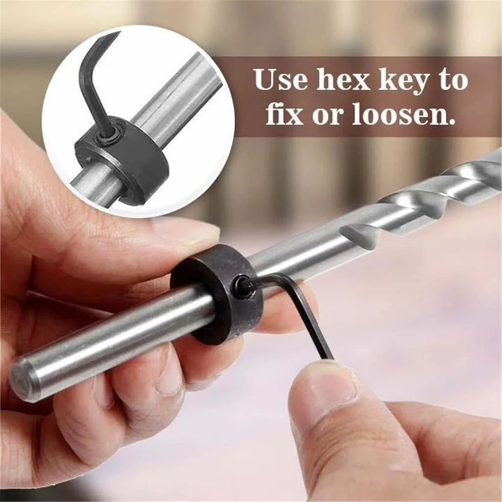 Ограничитель для воротника с глубиной сверла быстро и легко поможет вам сверить отверстия до точной глубины и идеально подходят для работы по производству и многократного сверления, путем положительной фиксации в любом месте вдоль бит.