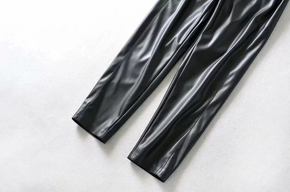 Женские брюки из искусственной кожи; повседневные брюки zora из искусственной кожи с высокой талией; зимние теплые спортивные брюки-Капри из флока; модель 2020 года