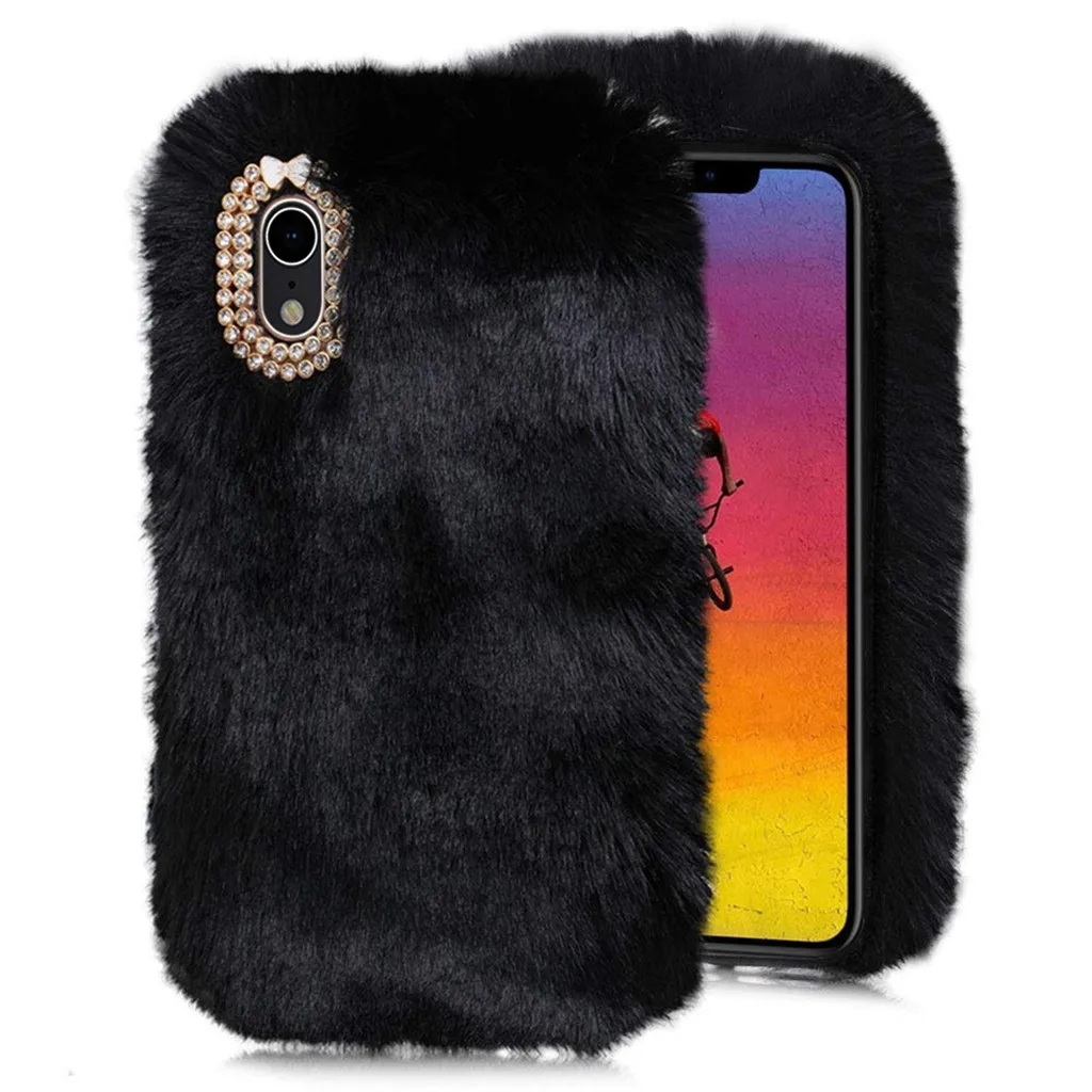 1х теплый пушистый ворсистый плюшевый шерстяной блестящий чехол-накладка для iPhone XR 6,1 дюймов