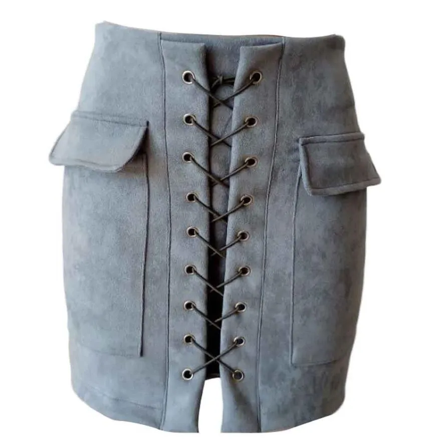 Винтажная Женская бандажная замшевая ткань мини-юбка тонкая бесшовная тянущаяся узкая короткая трапециевидная юбка
