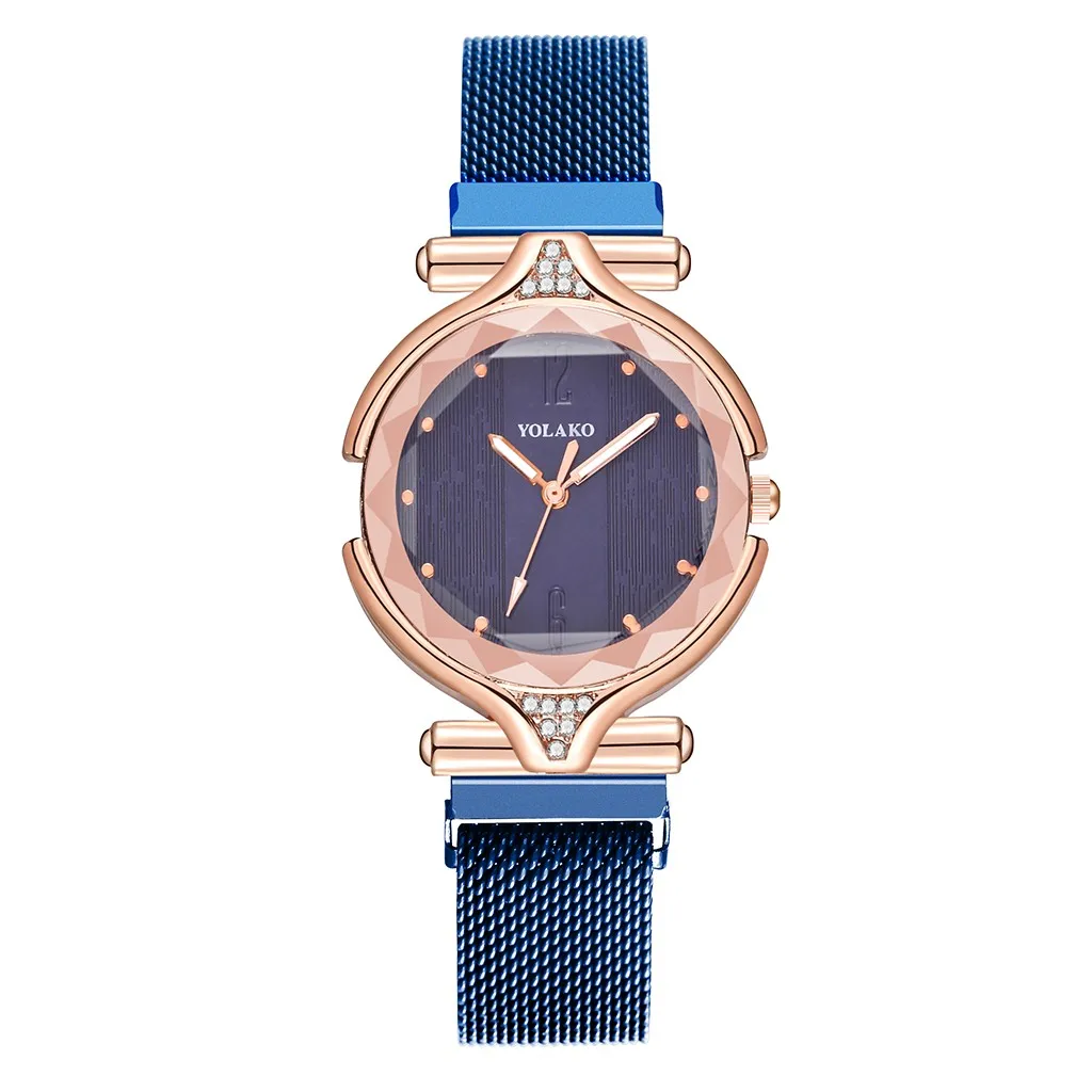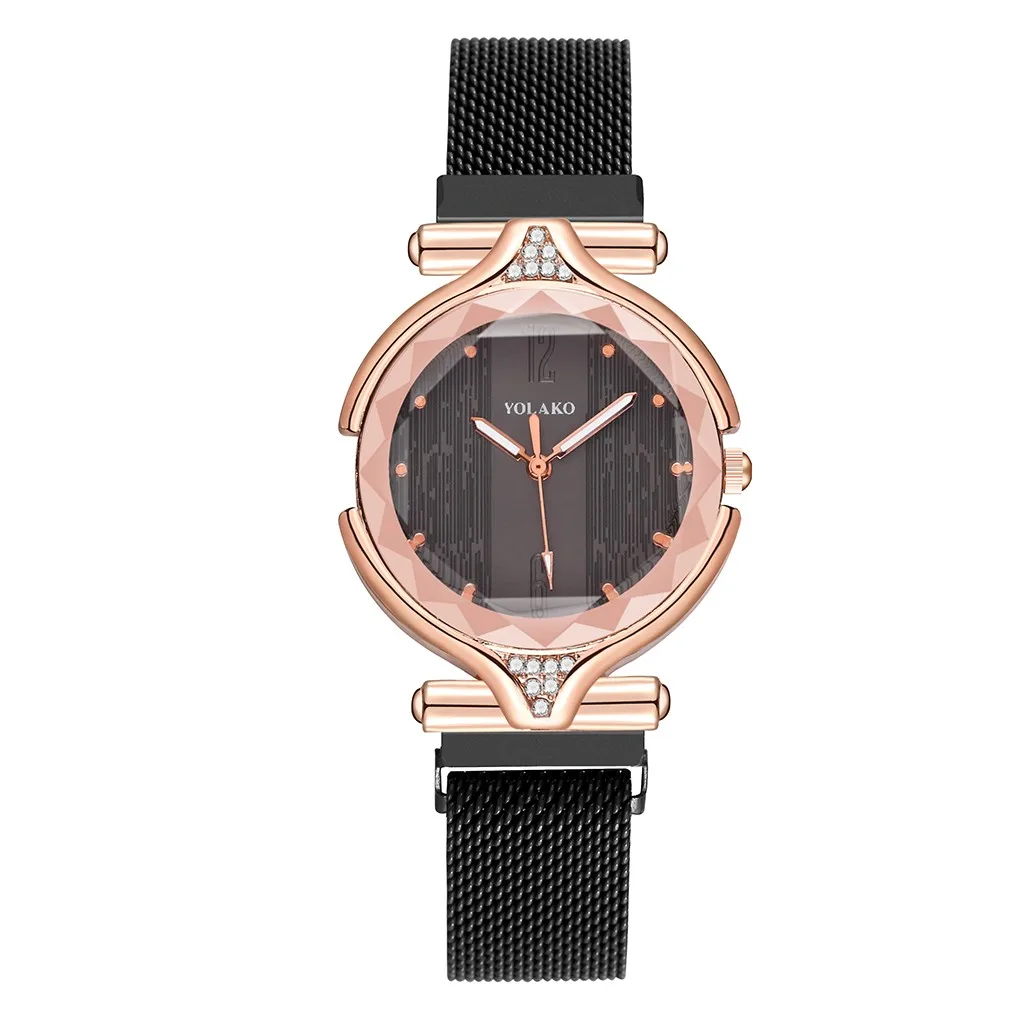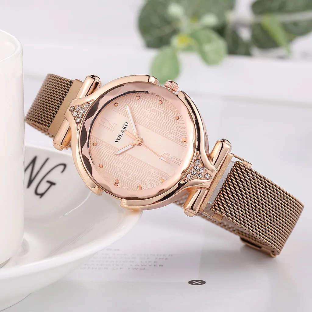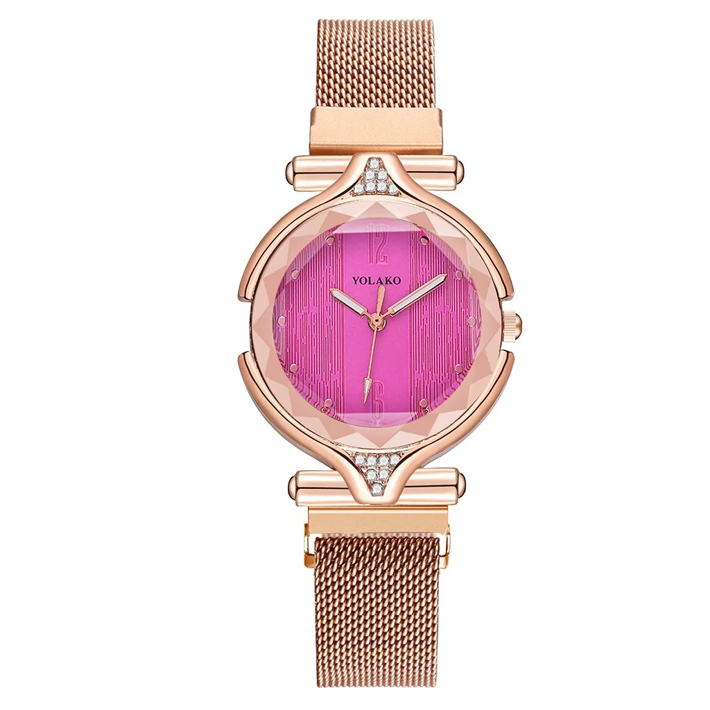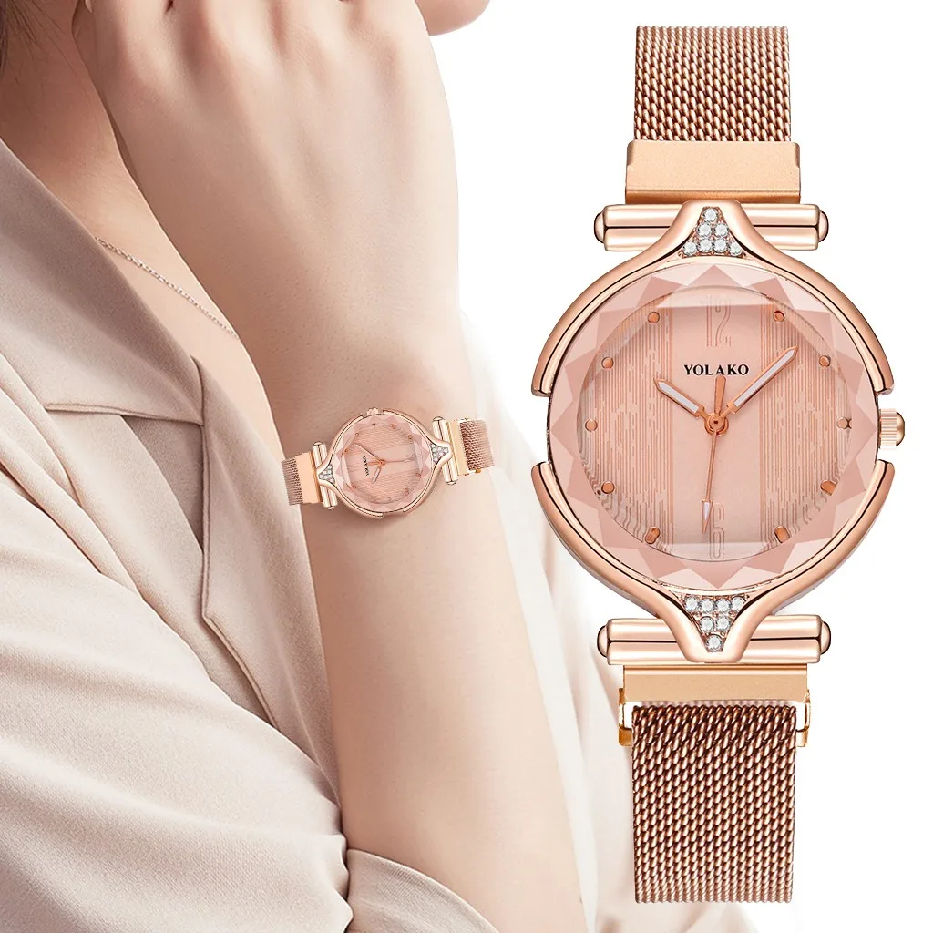 YOLAKO, модные женские часы с магнитной пряжкой, розовое золото, сетка, нержавеющая сталь, женские наручные часы, часы женские, reloj mujer, подарок