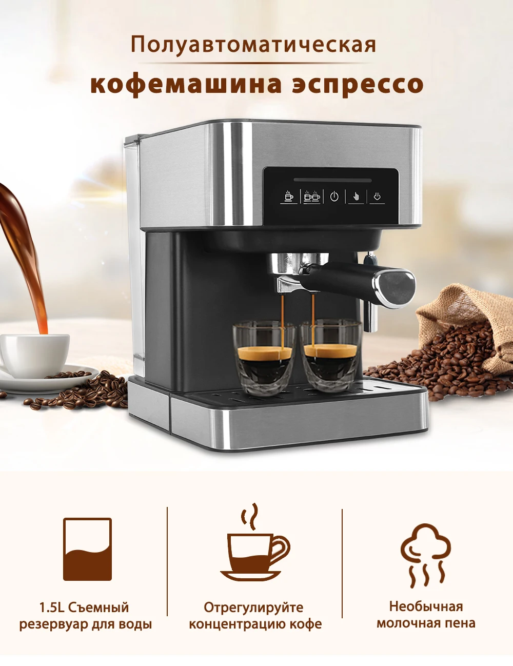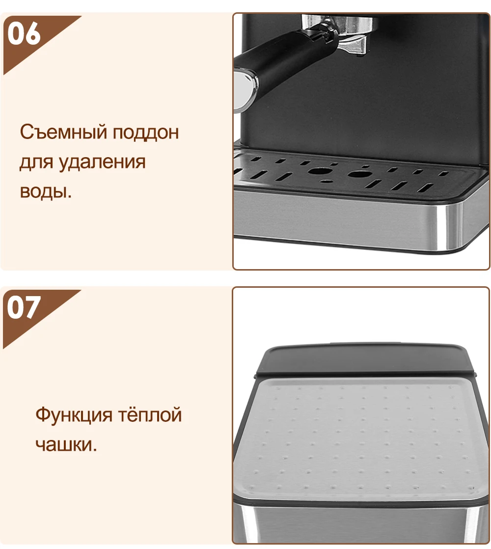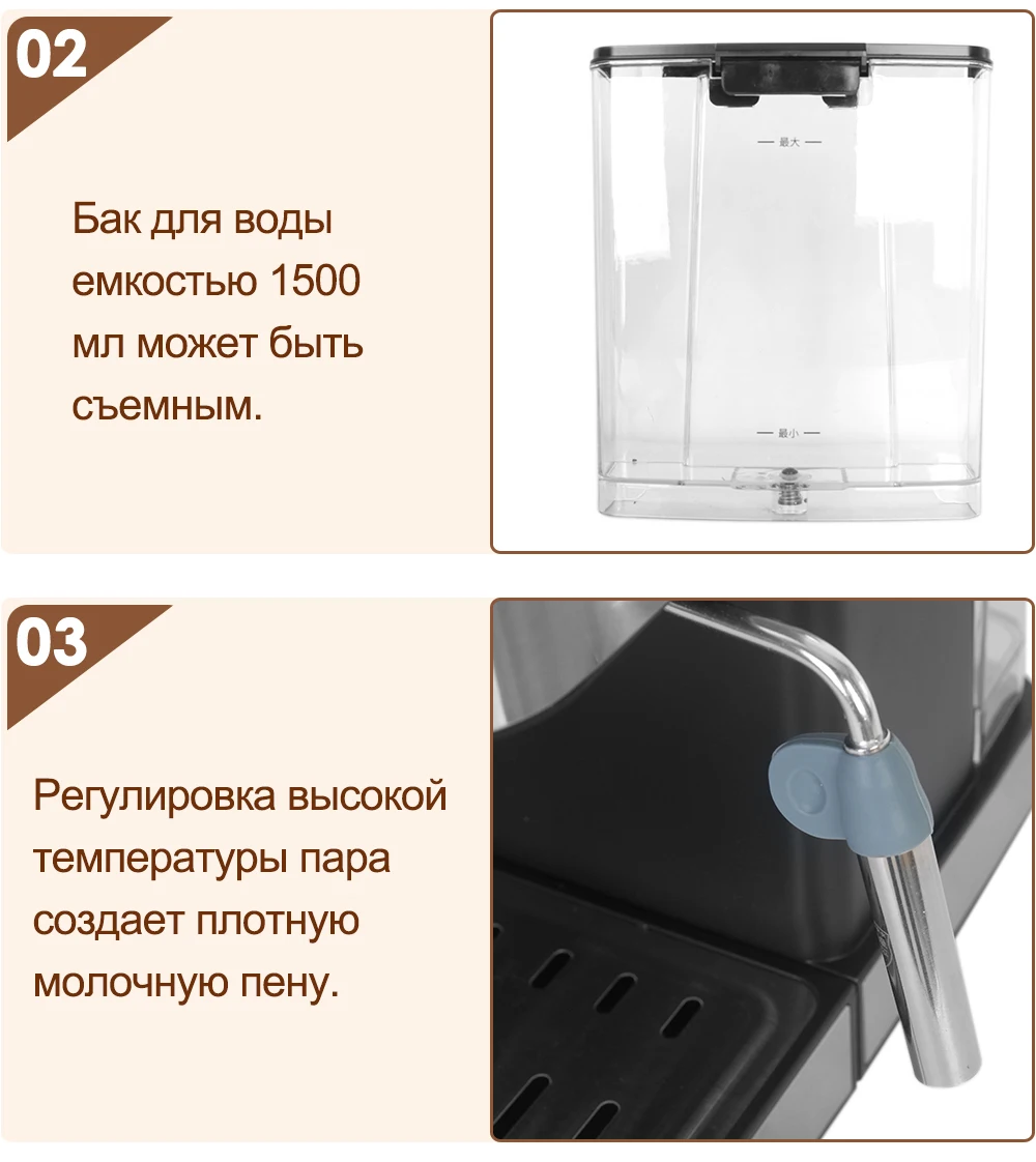 1. Различные типы кофе, с функцией пара.