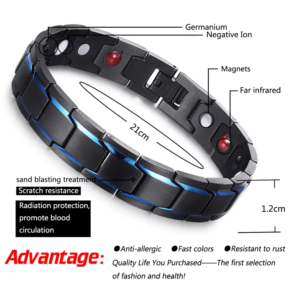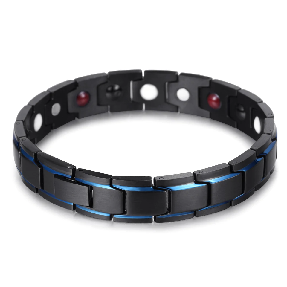 Мужские браслеты-шармы с магнитной терапией от RAINBOW 4 в 1, ювелирные изделия из нержавеющей стали с элементами для ухода за здоровьем, черный, синий, мужской браслет