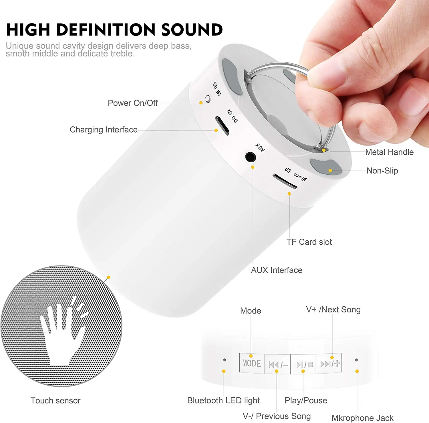 ♫【Все-в-одном функции】: Эти гаджеты в сочетании с музыкой и элементами светильник! Не просто лампа, это умный сенсорный Режим лампы + Bluetooth 4,1 динамик + беспроводной музыкальный плеер + телефон с громкой связью. Многофункциональный, умный, сдержанный и простой, вот и все! ♫【Теплый светильник и режим изменения цвета 】: затемняемый 3 уровня теплый белый светильник, в режиме теплый светильник, нажмите на сетку динамика изменит яркость или выключит светильник. Коснитесь режима динамиков в течение 2 секунд, переключитесь в режим «цветной светильник». Коснитесь сетки динамика, чтобы изменить цвет светильник. ♫【AUX-IN/tf-карта: разъем для AUX-IN позволяет воспроизводить музыку с iPod/MP3-плееров через аудиокабель 3,5 мм. Кроме того, он может воспроизводить музыку с tf-карты (tf-карта не входит в комплект) напрямую. Металлическая ручка внизу. Этот подарок можно повесить или носить вручную. Подходит для кемпинга, чтения или романтического ужина. ♫【Долгое время работы 】: встроенный аккумулятор высокой емкости 2000 мАч, поддержка до 12 часов непрерывного прослушивания музыки по Bluetooth или высокой яркости 8 часов светильник или светильник после полной зарядки около 4 часов. Получайте удовольствие от теплая светильник и музыки, в то время как вы читаете, занимаясь йогой, романтических свечей светильник ужина или кемпинга в помещении или на открытом воздухе. ♫【Идеальный подарок 】: Наслаждайтесь теплым светильник и музыкой, в то время как вы в чтении, занимаетесь йогой, романтический ужин со свечами, Пешие прогулки, тренажерный зал, студия, офис кемпинг в помещении или на открытом воздухе. Конструкция крючка в нижней части позволяет легко переносить его в эти места. Он также используется в качестве ночной Светильник, автоматическое конфигурирование светильник Музыка & История перед сном.