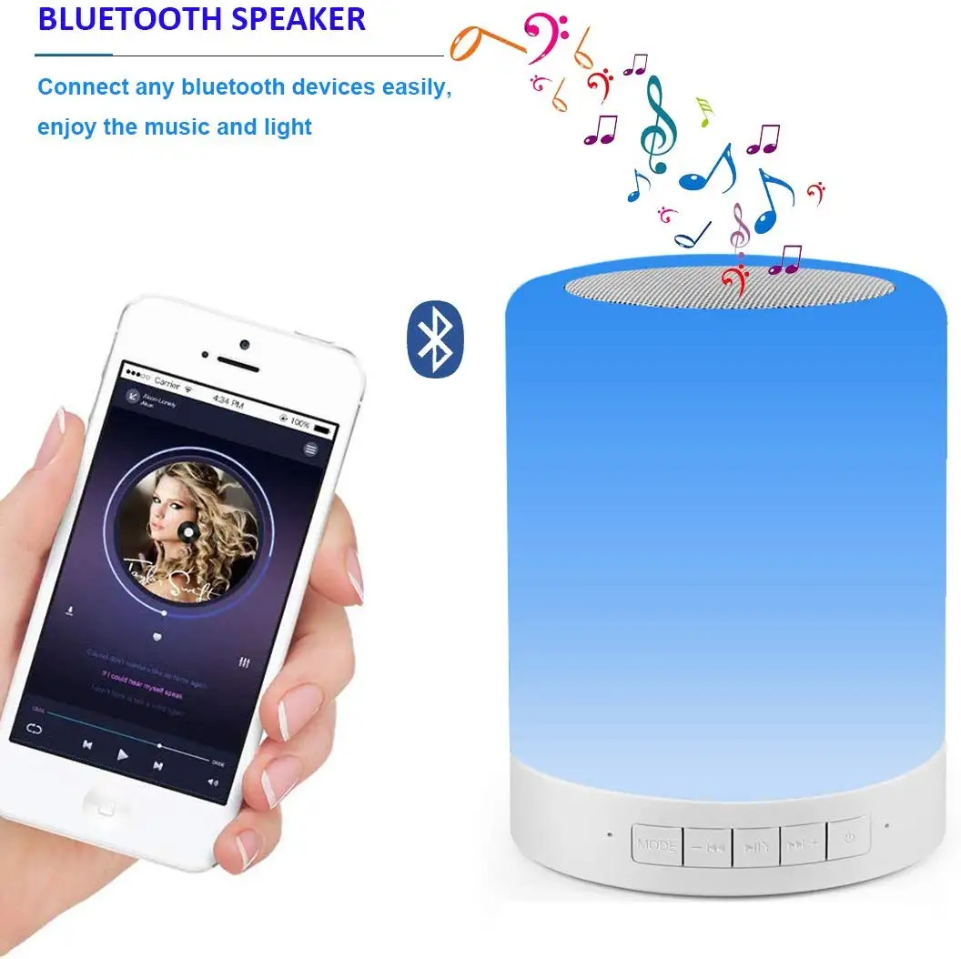 Bluetooth-динамик, ночники, перезаряжаемый bluetooth-динамик, mp3-плеер, сенсорное управление, прикроватная лампа, затемненный RGB многоцветный лучший подарок для мужчин, женщин, подростков, детей, спальный помощник