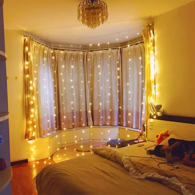 3 м x 3 м 300 светодиодный дома украшения гирлянды светильник s для отдыха и вечеринок гирлянды светильник окна DIY Декор Свадебная Фея Шторы гирлянды полосы