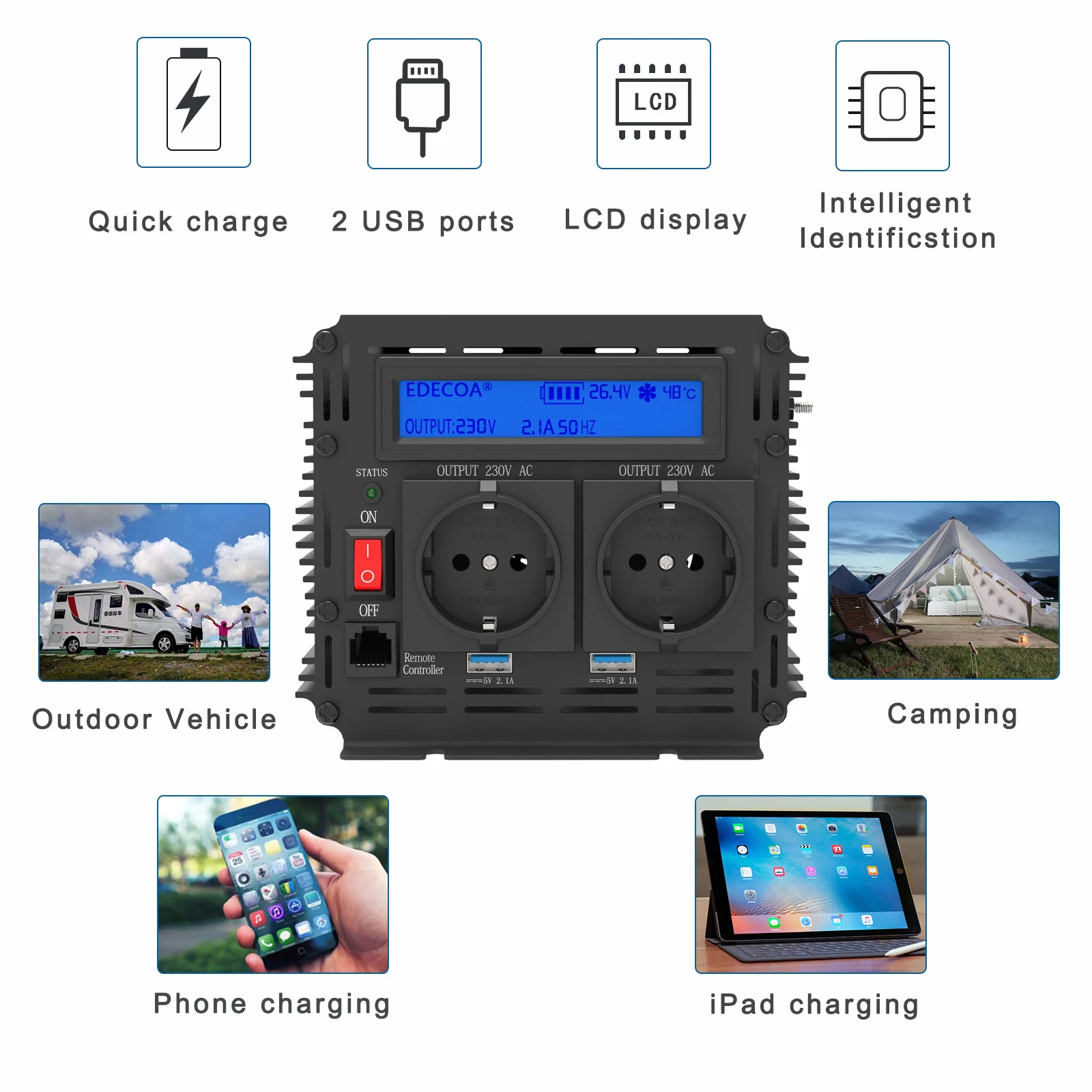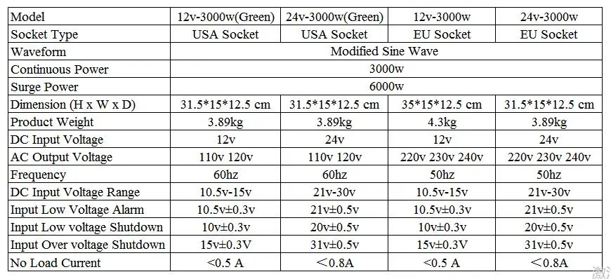 Инвертор постоянного тока в переменный Мощность инвертор 12V 230V мы можем доставить 3000W постоянного Мощность/6000W макс пик Мощность. Управляемый однополярным SPWM, выходная Синусоидальная форма сигнала более чиста, THD<3%, более низкие электромагнитные помехи.