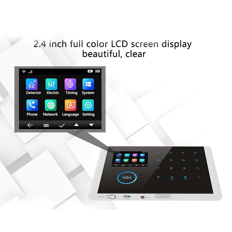 Приглашаем использовать интеллектуальную голосовую WIFI + GSM + GPRS сетевую систему сигнализации, которая является классическим внешним видом и ультра-тонким внешним видом; Принять 2,4-дюймовый TFT цветной экран и пресс-дизайн; стабильная и надежная производительность, полнодиапазонная беспроводная передача, одноклавишный детектор сопряжения, когда хост получает любой детектор тревоги, Зона сигнализации и атрибут отображаются на хосте, и 110 сигналов отправляются на месте.