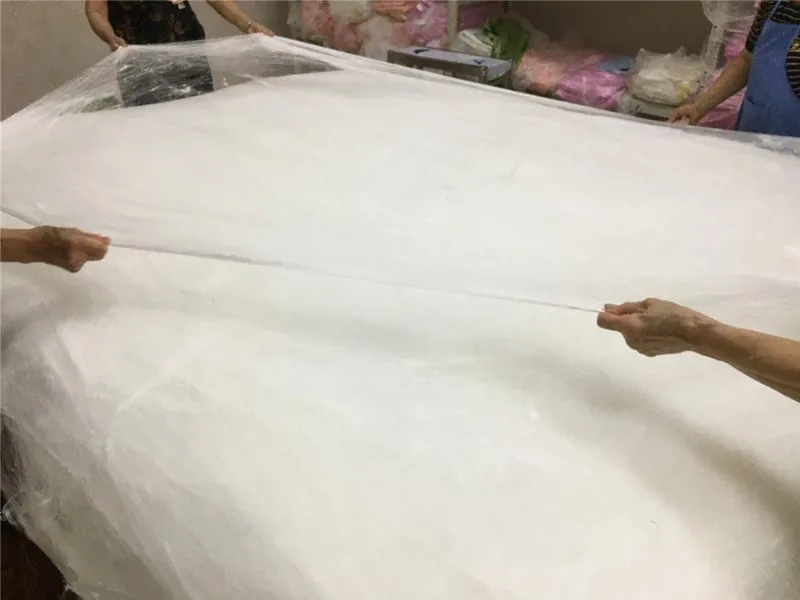 4. Из-за транспортировки на большие расстояния, продукты в вакууме будут немного складываться, не так плоско, как на картинке, но не влияет на использование. После получения, положите его в проветривающееся место, чтобы высохнуть, мягко погладьте его руками, пусть шелковые поры будут наполнены воздухом, что делает одеяло более пушистым.
