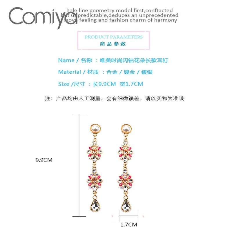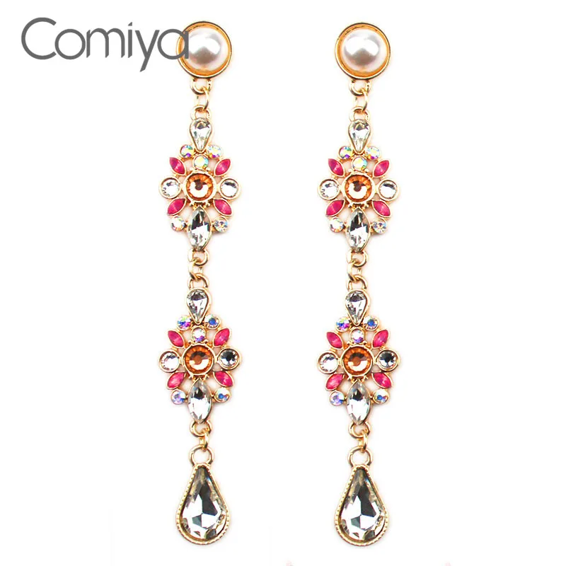 Серьги-капли Comiya, винтажные аксессуары из цинкового сплава золотого цвета с кристаллами и цветком, модные ювелирные изделия Mujer, индийские висячие серьги