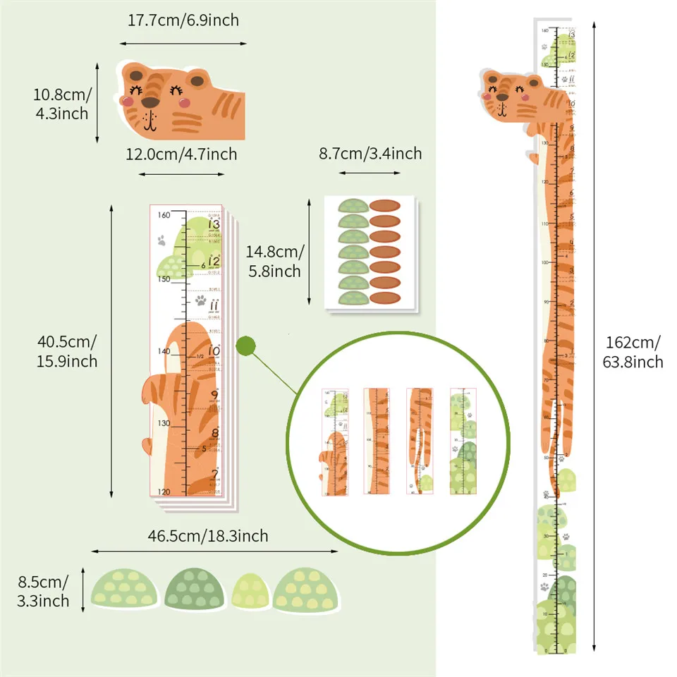 3D рост, измеряющая линейка, акриловые наклейки на стену с изображением тигра для детей, роспись с диаграммой роста ребенка, наклейки для детской стены, украшение для дома