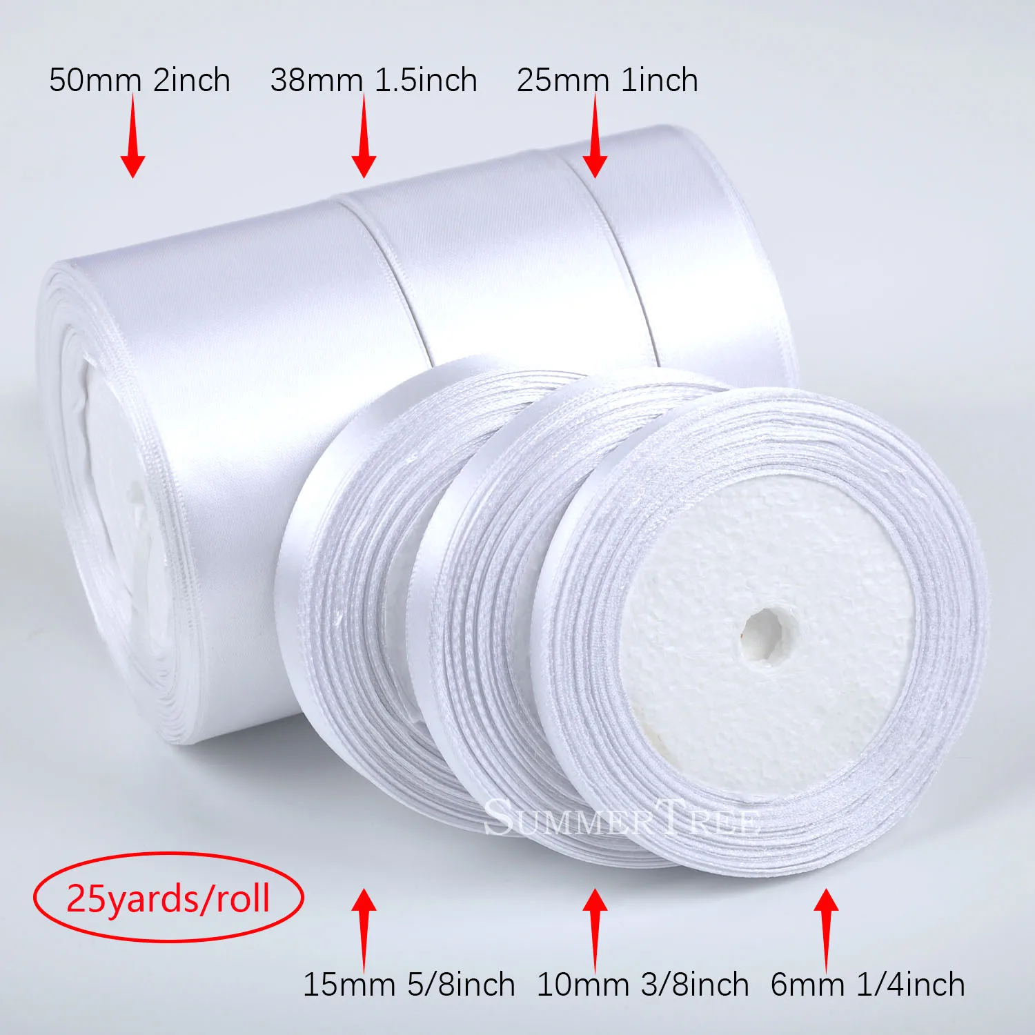 Ширина: 1/4 дюйма (6 мм) , 3/8 дюйма (10 мм) , 5/8 дюймов (15 мм), ширина 1 дюйм (25 мм), 1,5 дюймов (38 мм) , 2 дюйма (50 мм)