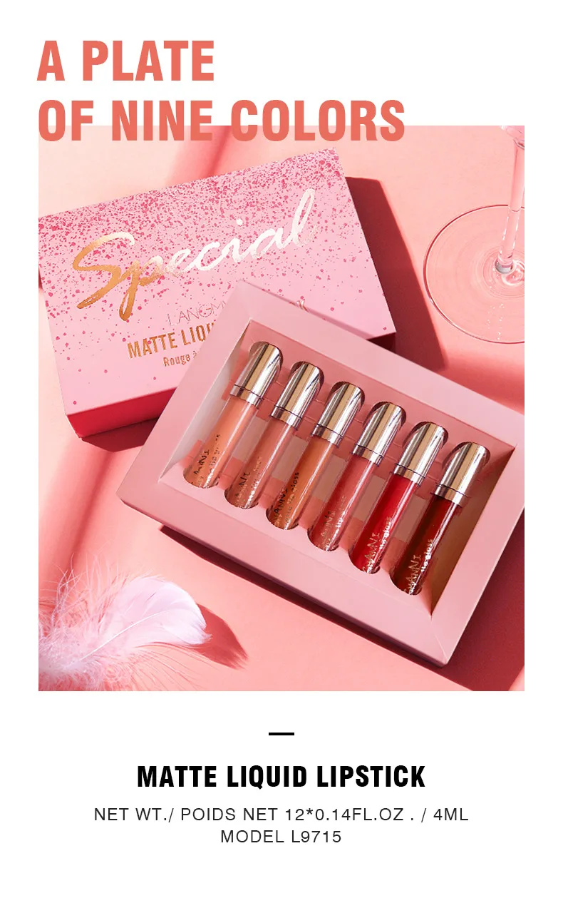 6 цветов, имеющихся в наличииБлеск для губ прост в нанесении, цвет и яркость различаются, разное использование, различные эффекты, выбирайте разные цвета для разных случаев и показывает различные стили