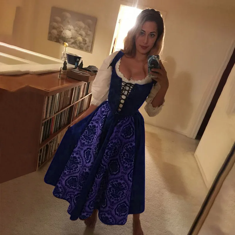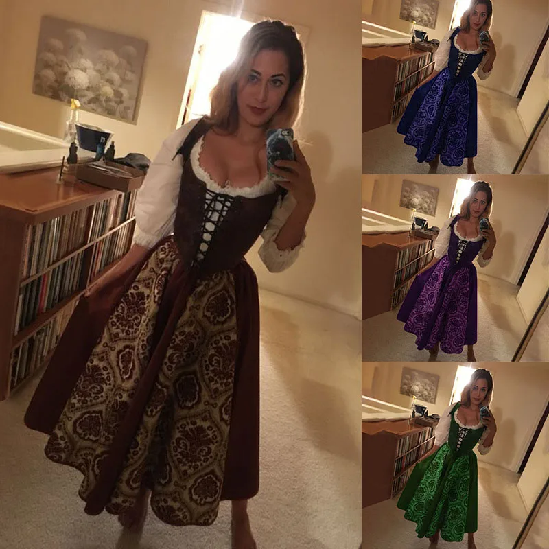 Средневековый Ренессанс королевская принцесса костюм Wench Faire лиф-корсет Верхняя одежда Хэллоуин вечерние качели сорочка Платье для женщин