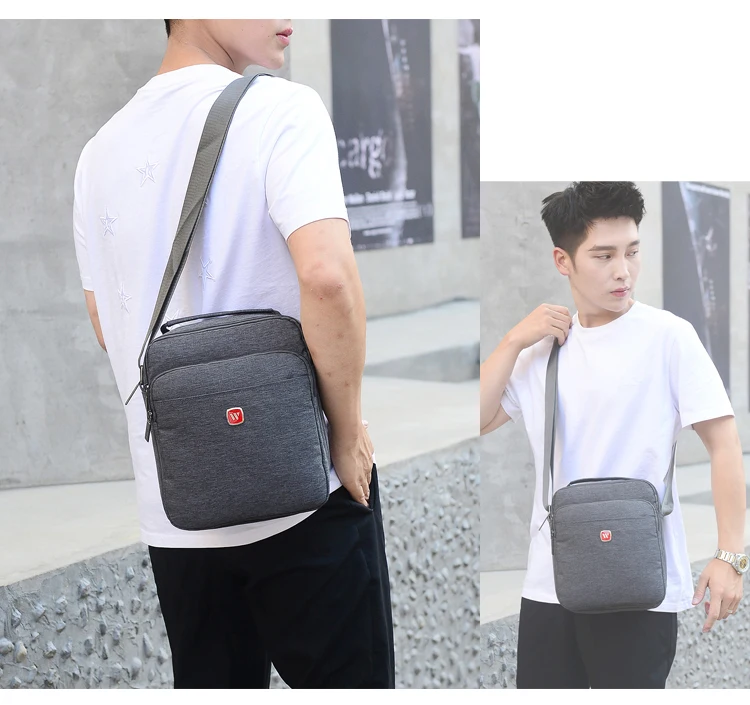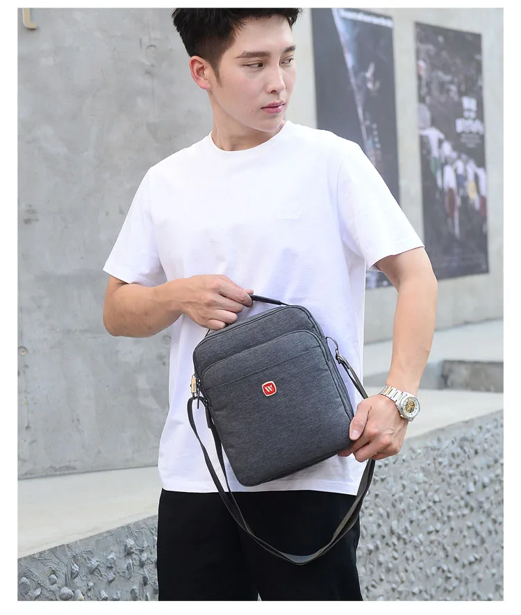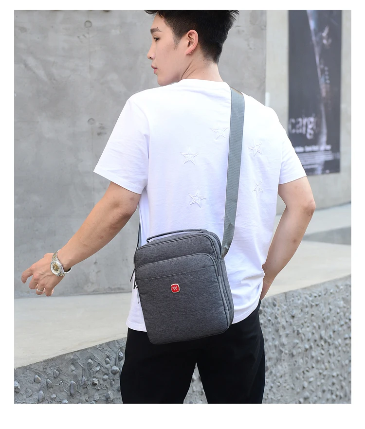 WOHLBEGE мужская повседневная ткань Оксфорд водонепроницаемая сумка на плечо большой карман на молнии модная однотонная сумка-мессенджер