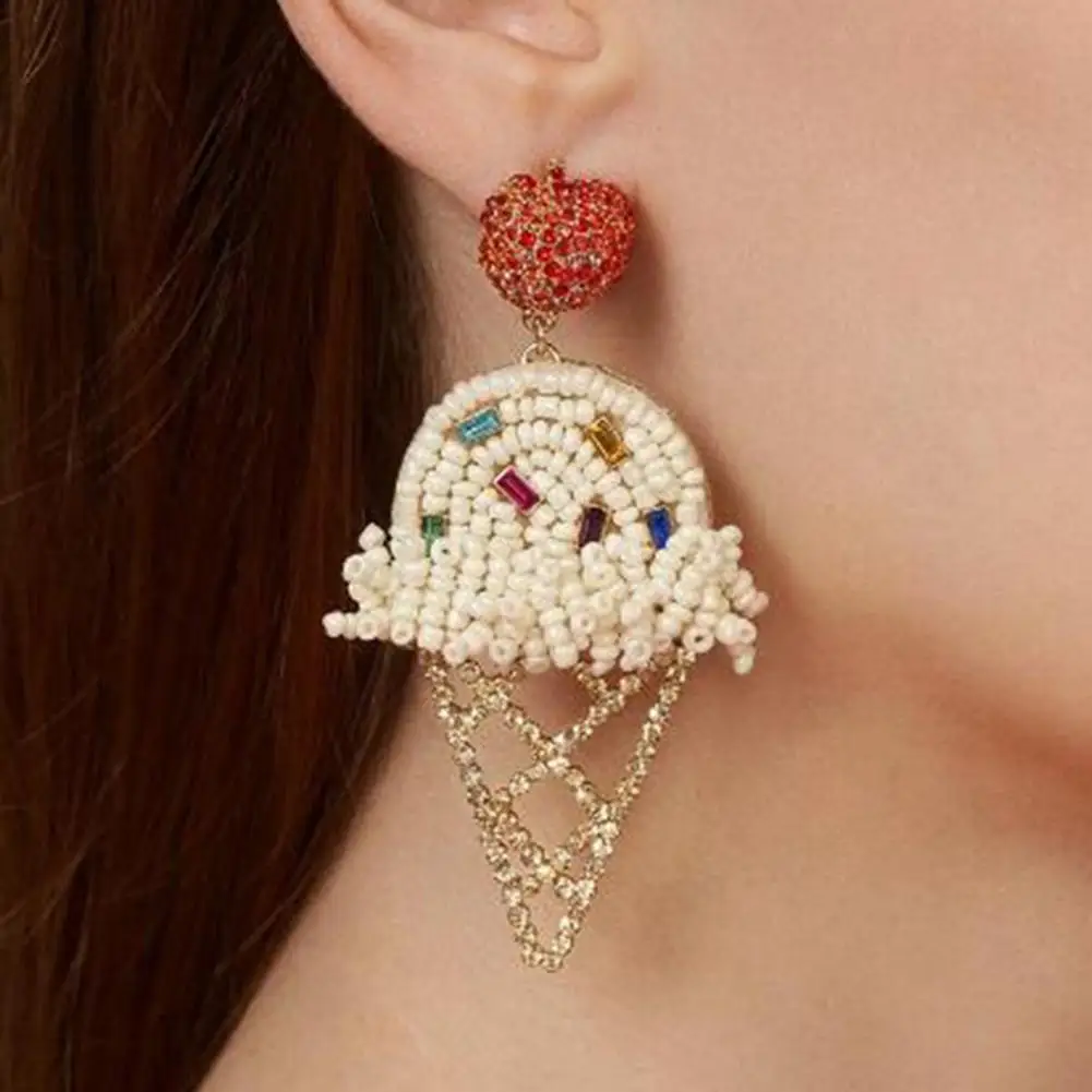 Женский сплав ледяные бусинки пирожное с кремом Стразы инкрустированные серьги-гвоздики ювелирные изделия подарок