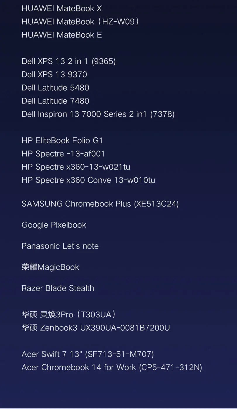 Please refer to the the the material on the bottom, the computers types have been tested, others can not be guaranteed