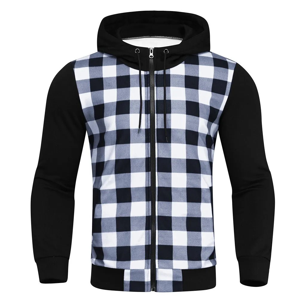 Легкая рубашка с капюшоном в клетку для мужчин, повседневные куртки, толстовка на молнии