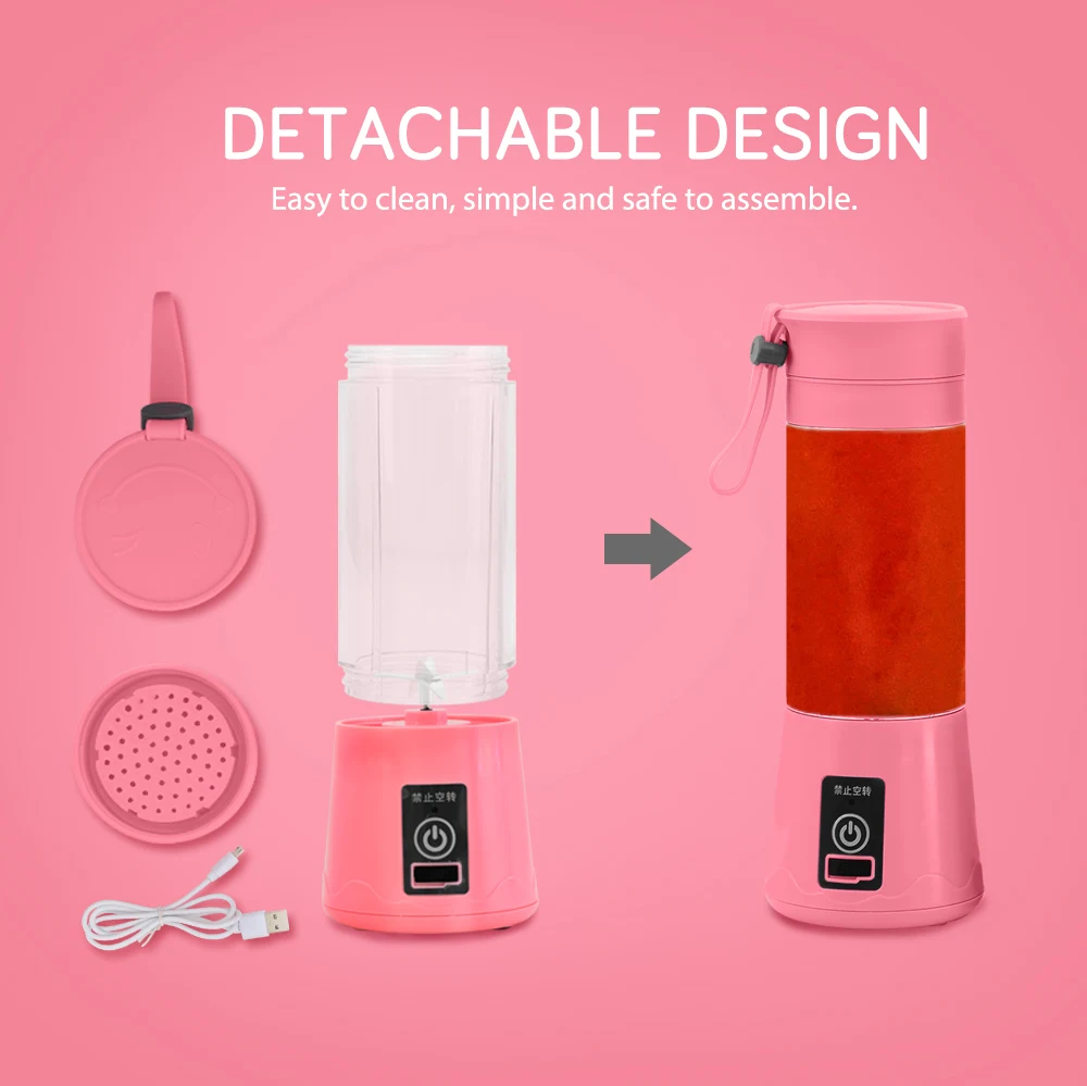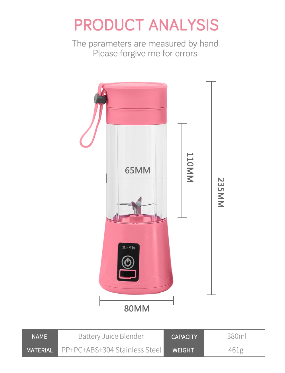 1. Многофункциональный. С двумя функциями бутылки и соковыжималки. Один продукт имеет две функции, модный, красивый 2. Сильная мощность. Загрузка 15000 об/мин скорость, вы можете быстро размешать различные фрукты, фруктовый сок, соевое молоко, молочный коктейль, рисовая паста 3. Высококачественные материалы. Покрытие чашки для защиты окружающей среды, подъемное кольцо из силикагеля, высокое боросиликатное стекло, лезвие из нержавеющей стали, основание из АБС-пластика является превосходным материалом, без химической опасности для человеческого тела, использование безопасности, будьте уверены 4. Легко носить с собой. Силиконовая конструкция подъемного кольца позволяет брать бутылку сока в любое место, спорт, прогулки, на открытом воздухе, пикник 5. С USB зарядной линией, в любое время, в любом месте можно заряжать, и больше не нужно беспокоиться о том, что нет электричества, дома, необходимости в путешествиях