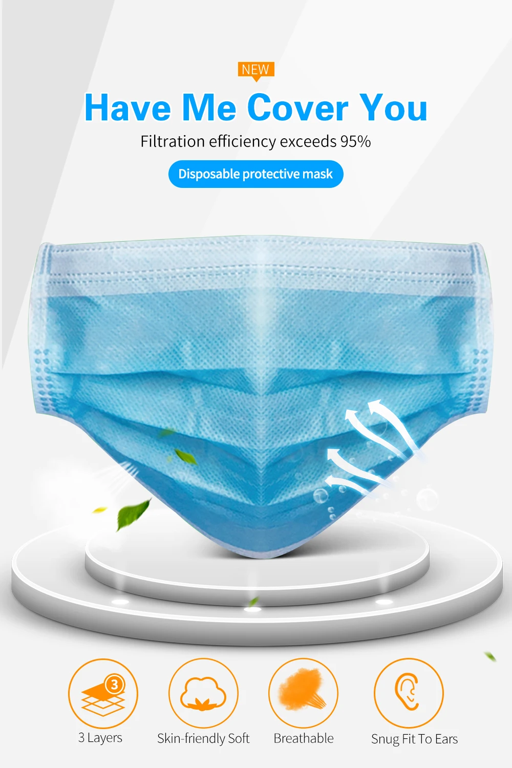 1. Новая ткань PP Нетканая ткань, мягкая и чистая, удобная и дышащая 2. Процесс бесшовной вязки, не вызывает стресса на лице 3. Три раза дизайн, больше дышащего пространства на лице 4. Пластиковая полоска для носа, алюминиево-пластиковая полоска для носа, 5. Многослойная защита для вашего дыхательного здоровья 6. Лучший выбор для вас и вашей семьи
