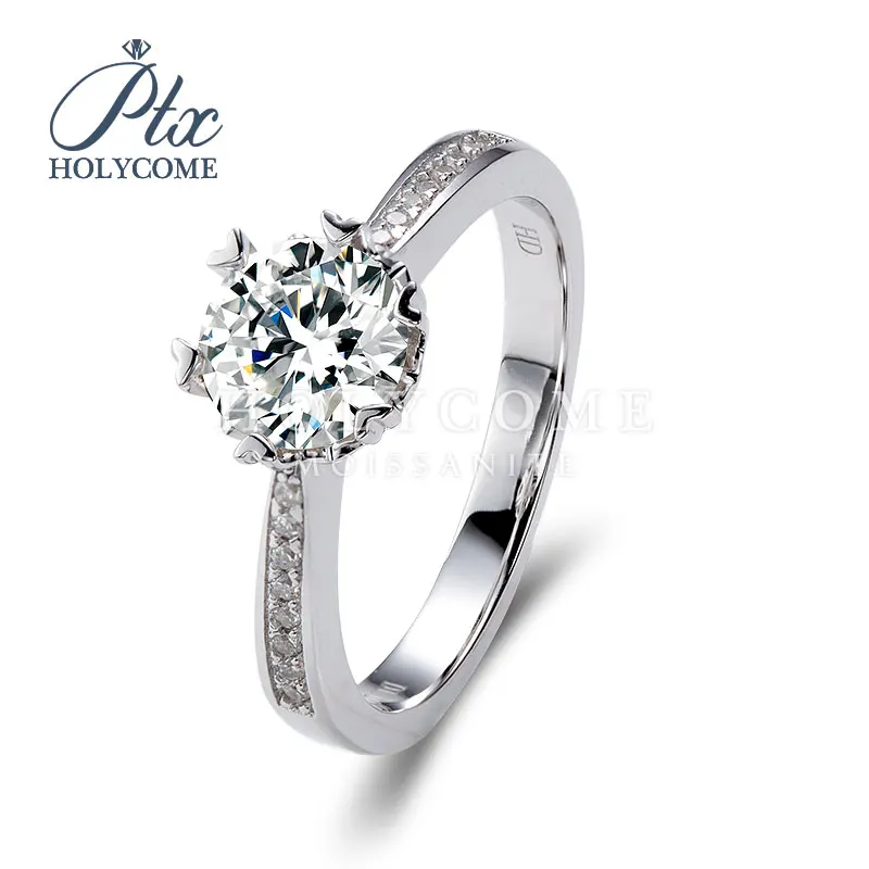 Белого цвета 1ct круглой огранки серебряные кольца с муассанитом онлайн продажи