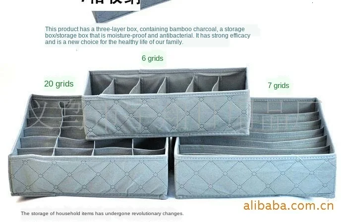 Bamboo charcoal non-woven 7-grid covered bra storage box, underwear bra 2-in-1 storage box