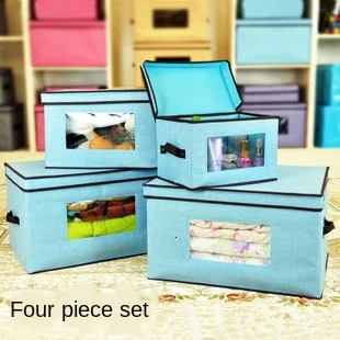 Folding window storage box four piece cotton and hemp PVC perspective storage box non-woven fabric finishing box