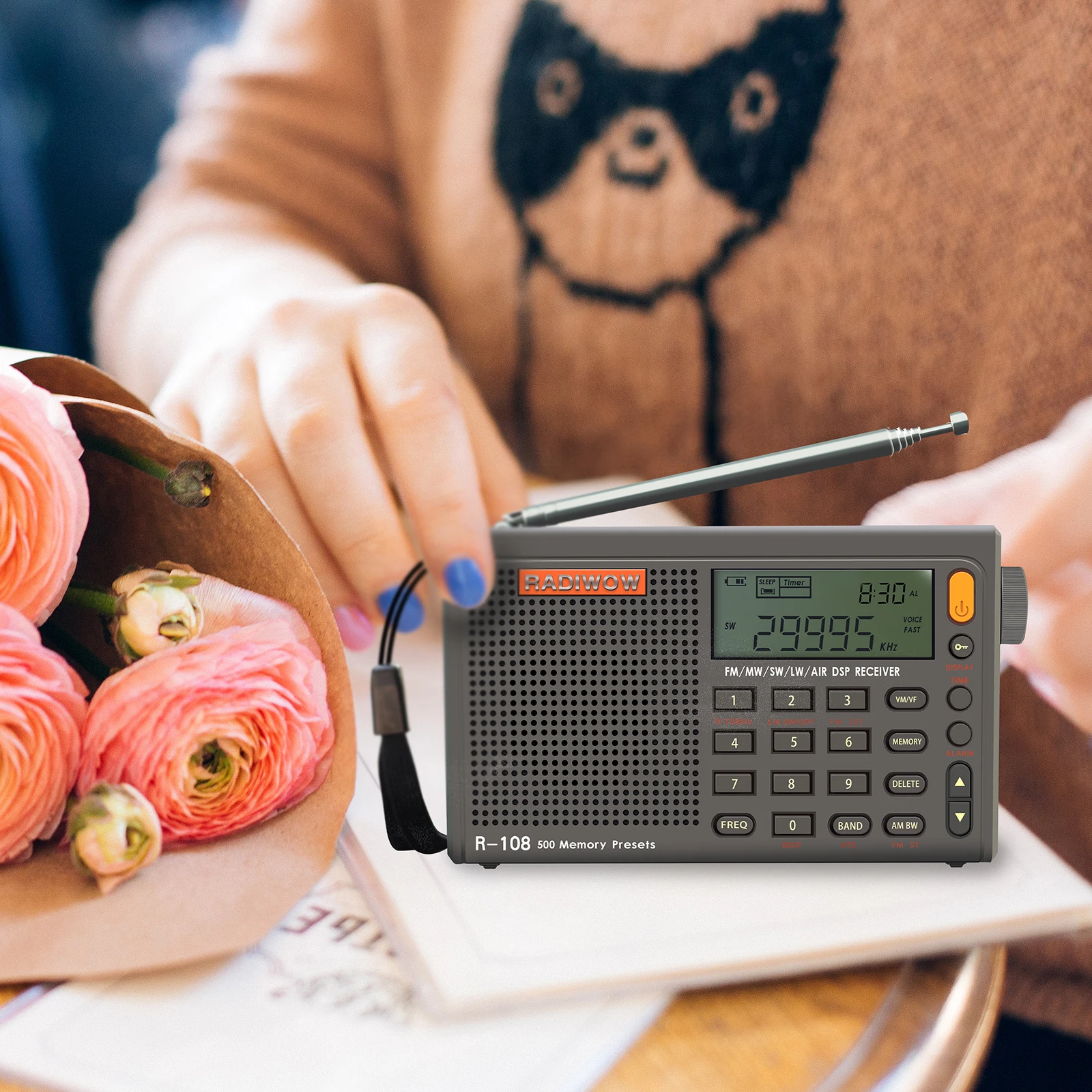 RadiwowR-108 цифровой портативный Радио Стерео FM /LW/SW/MW /AIR/DSP с ЖК-дисплеем/Высокое качество звуковой сигнализации функция для внутреннего и наружного