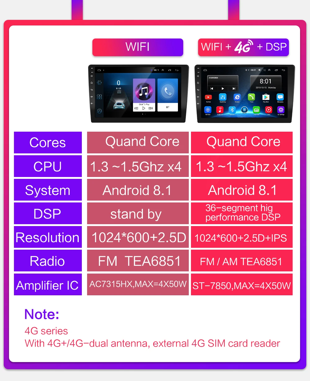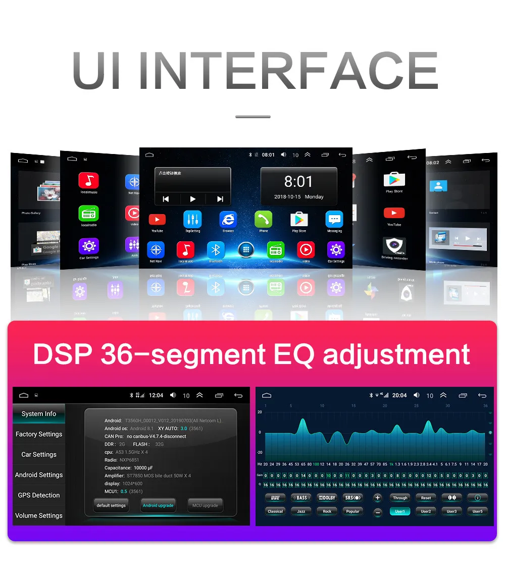 1, Операционная система Android 8,1 Можно установить приложение Google Play store, Skype, Facebook, youTube, Twitter и т. Д. 2, четырехъядерным процессором MTK8227 / Cortex-A7 Оперативная память + Встроенная память: 1 Гб + 16 ГБ/2G + 32G Система, которая занимает память внутренней операционной системы, занимает около 4-6 ГБ памяти 3. На экране представлены различные Языки меню: китайский (упрощенный), китайский традиционный, русский, испанский, турецкий, иврит, Арабская, французская, немецкая, португальский, Корейская тайская 48, И т. д. 4, поддержка автомобильного logo5, встроенный в AV-OUT (поддерживает подключение нескольких наушников) RDS не поддерживается 5.Pantalla capacitiva HD 2.5D, разрешение: 1024*600, совместим с 1080 p + Must sin pérdidas Soporte OBD (опционально) Soporte DAB + (опционально) 4G-SIM(TF)-DSP (опционально) 4G-SIM(TF)-DSP: не поддерживает видеовыход