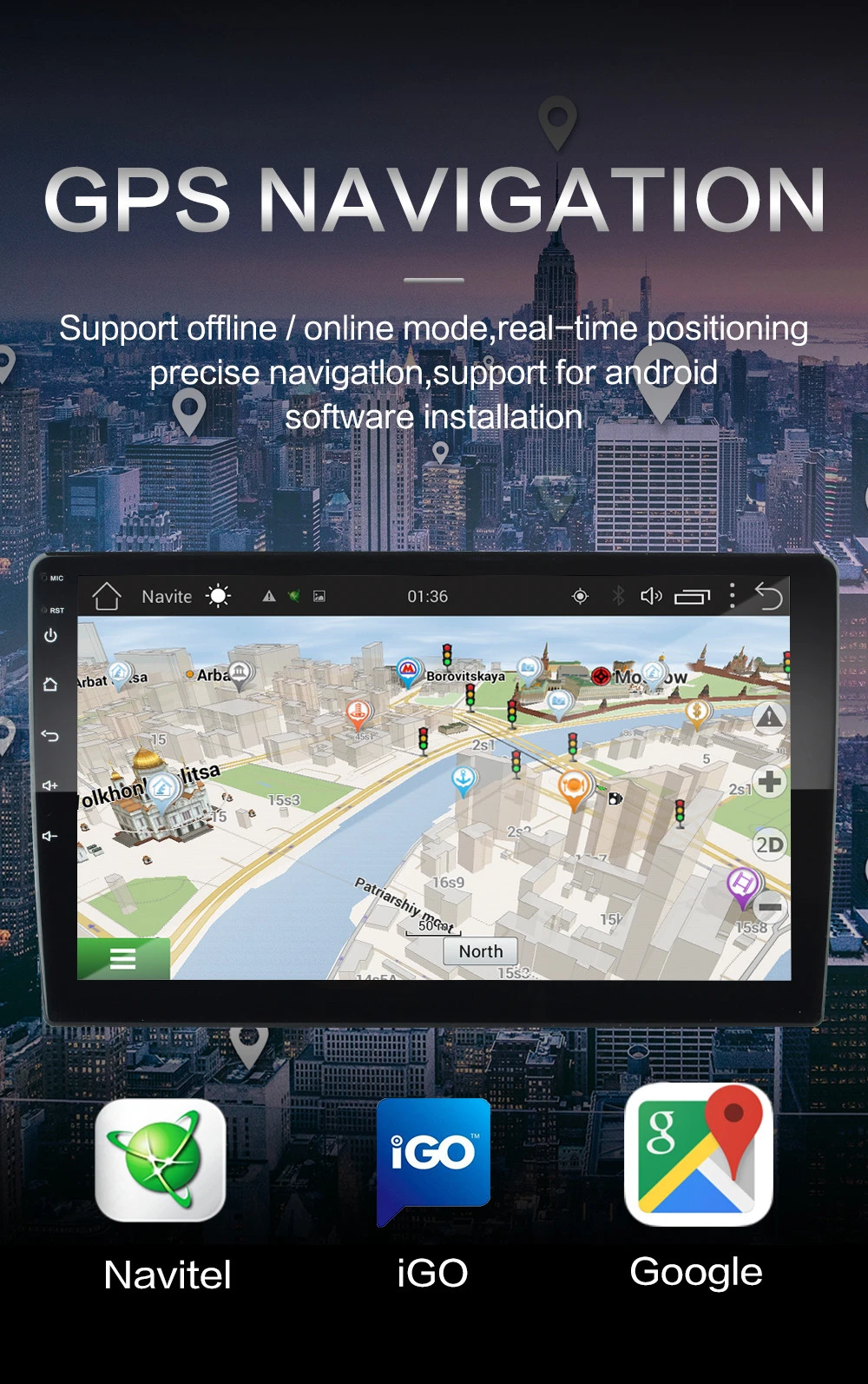 Включает карты по всей Европе, Африки, Южной Америке, Северной Америке, Азии! Установите и обновите бесплатные карты Бесплатные карты в автономном режиме, включая: IGO, Sygic Поддержка установки онлайн-карт: Google, Waze