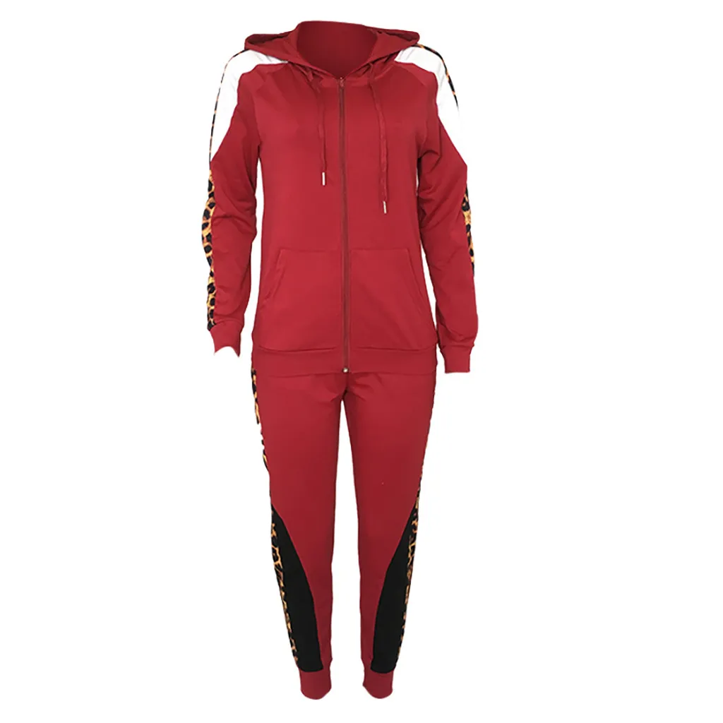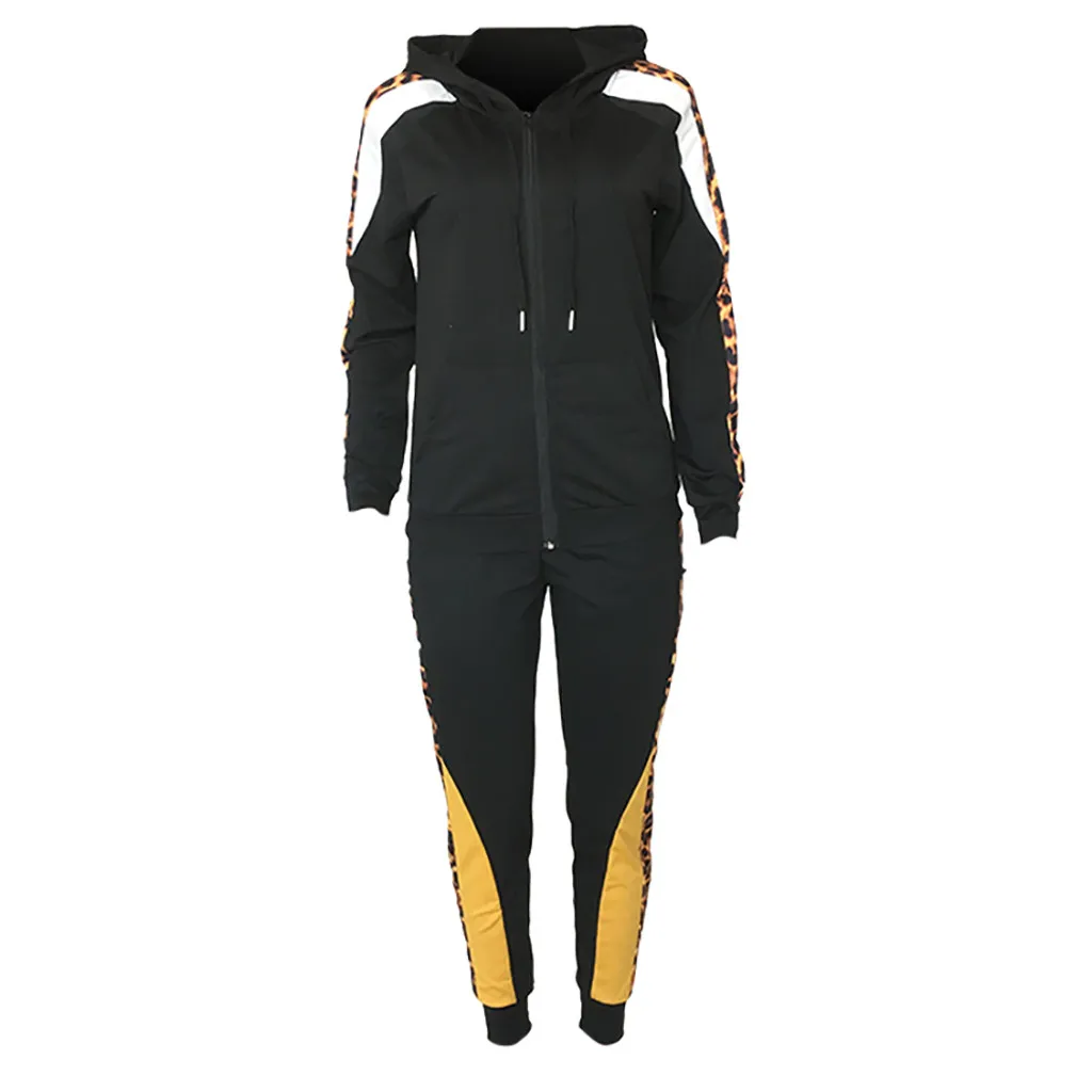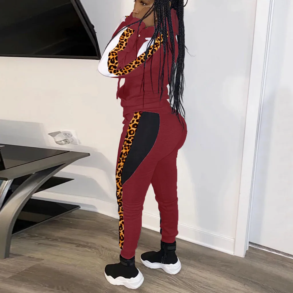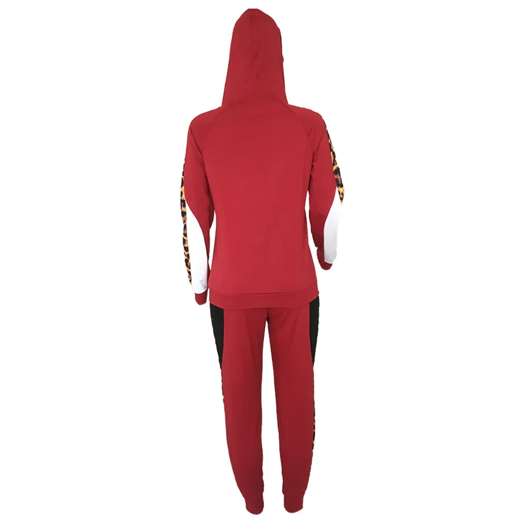 Модный женский леопардовый принт с длинным рукавом и брюки повседневный комплект с капюшоном на молнии