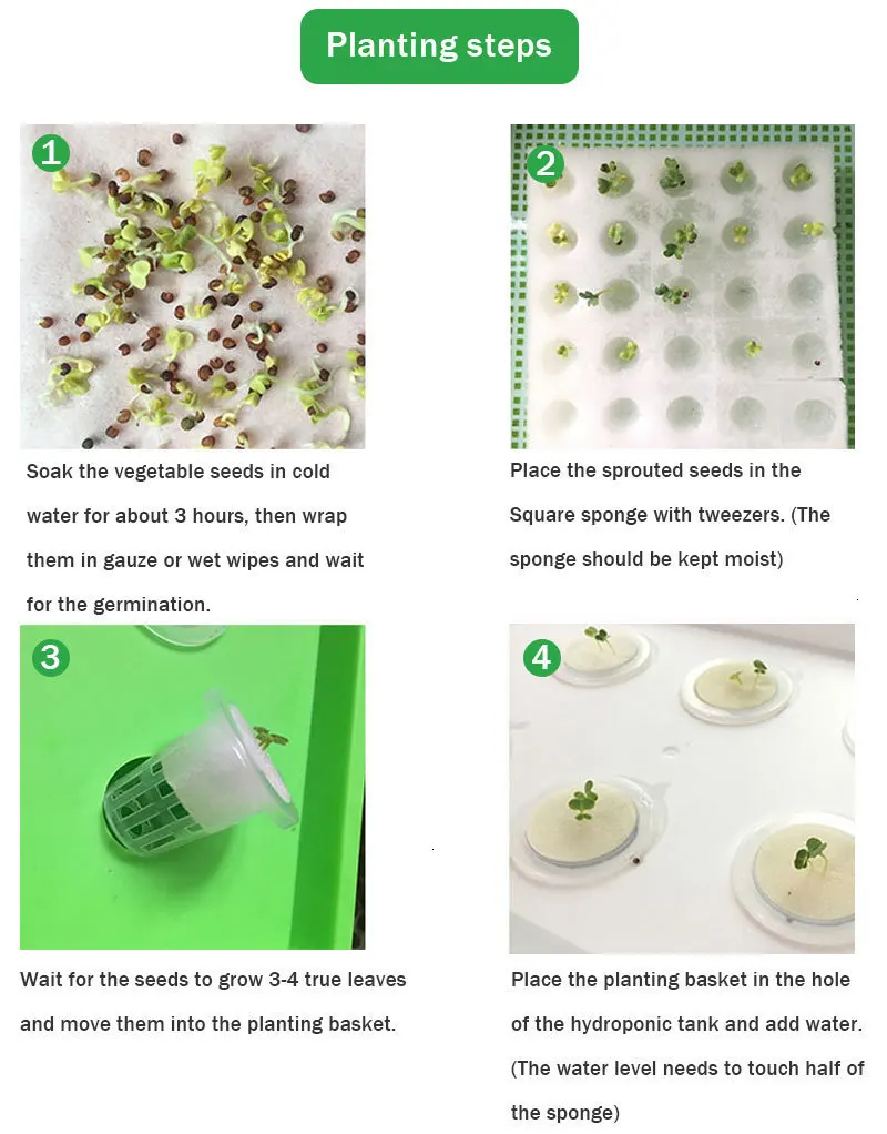 4Place the planting basket in the hole of the hydroponic tank and add water. (The water level needs to touch half of the sponge)