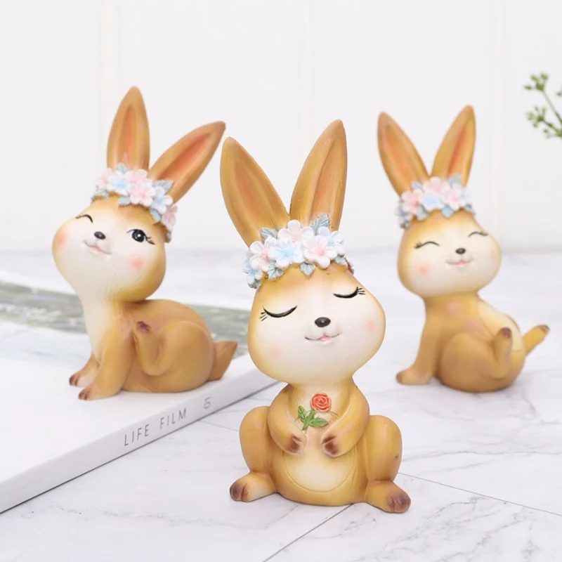 Домашние миниатюрные фигурки кролика милые Мультяшные животные торт Топпер статуя для украшения дома аксессуары настольные украшения