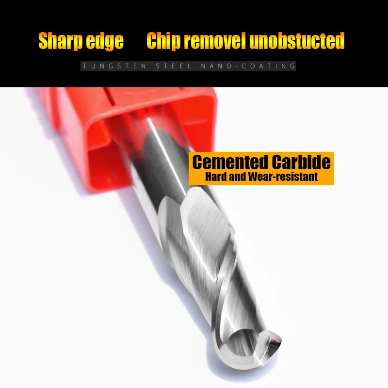 HRC55 2 Флейта Вольфрамовая сталь фрезерование шарового конца резак для алюминия