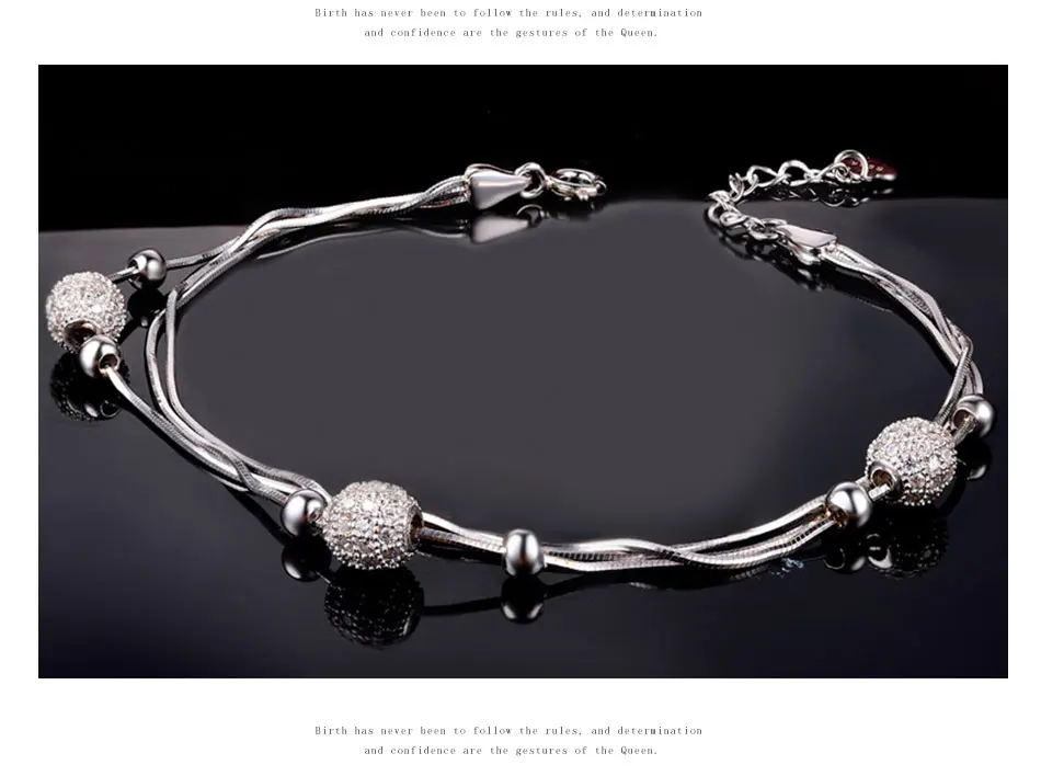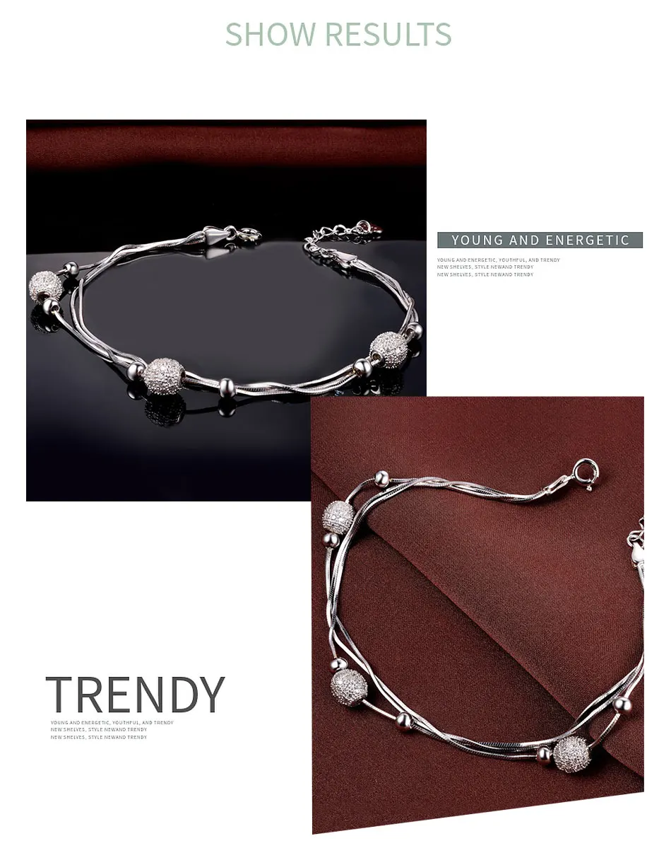 925 пробы серебро 3 слоя змея цепь с скраб шарик шарм браслеты цепь регулируемый браслет для женщин Свадебные ювелирные изделия