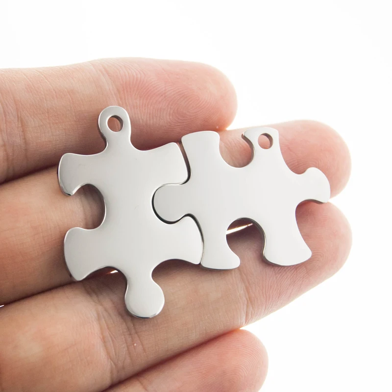 100% пустые пазлы из нержавеющей стали брелок для гравировки пустые металлические бирки для ключей Portachiavi Puzzle Mirror Polished
