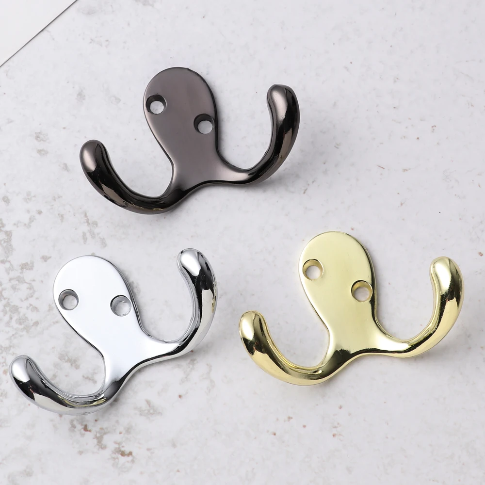 Двойное пальто и крючки для одежды, идеально подходит для хранения пальто, полотенец, шарфов и шапок, занимая очень мало места.Легко крепится к задней части любой двери.Доступно В Хромированном или латунном покрытии.Посылка включает в себя: