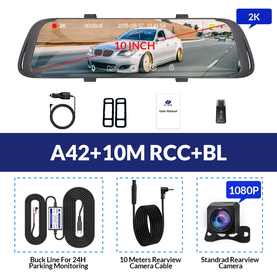E-ACE Автомобильный видеорегистратор 2K поток медиа зеркало заднего вида сенсорный FHD 1080P двойной объектив видео рекордер ночное видение Авто регистратор Dashcam