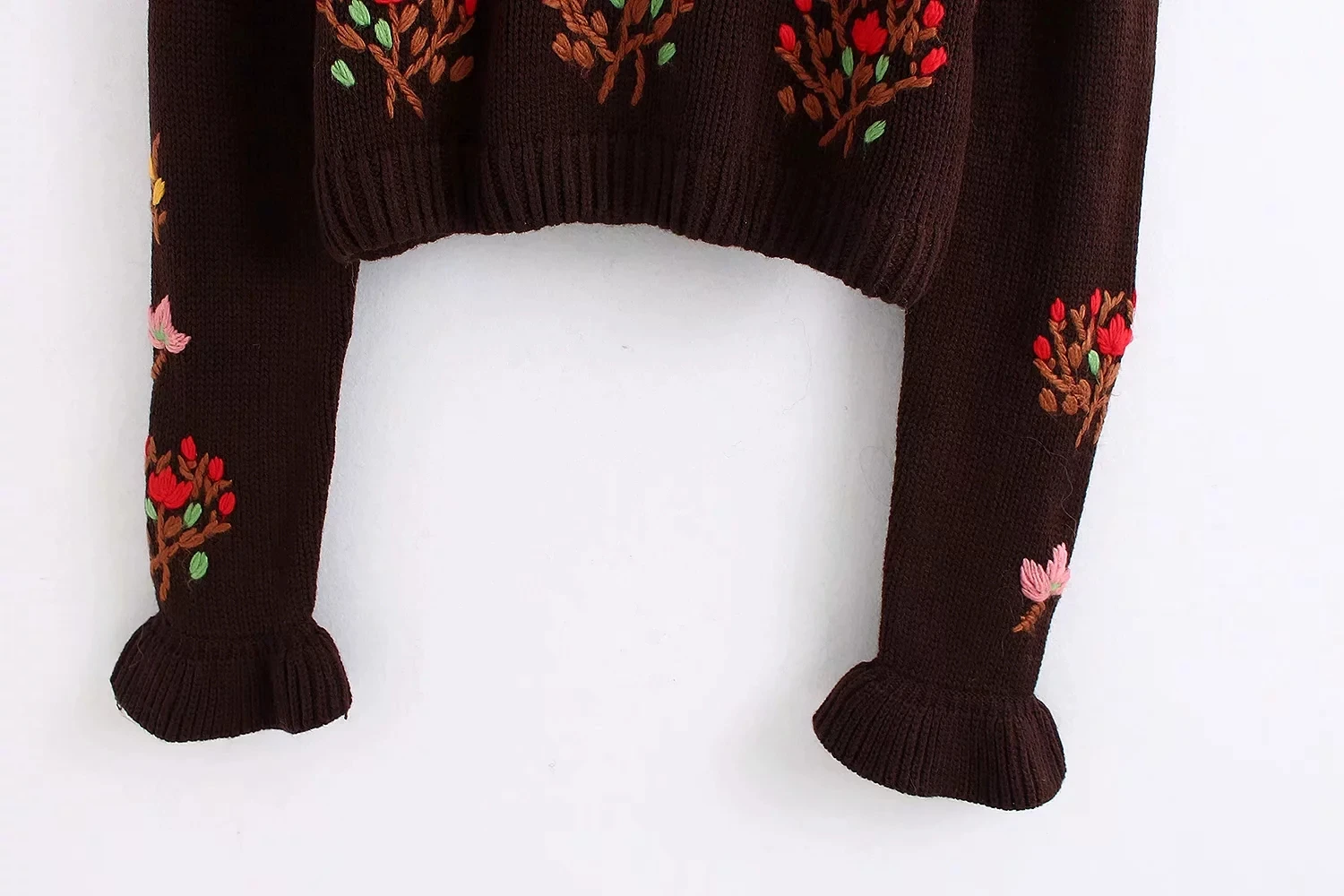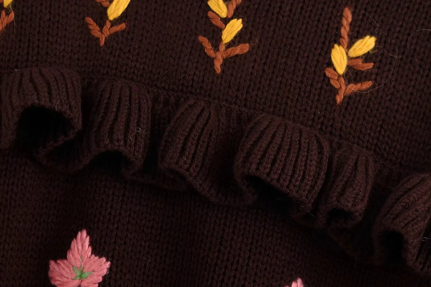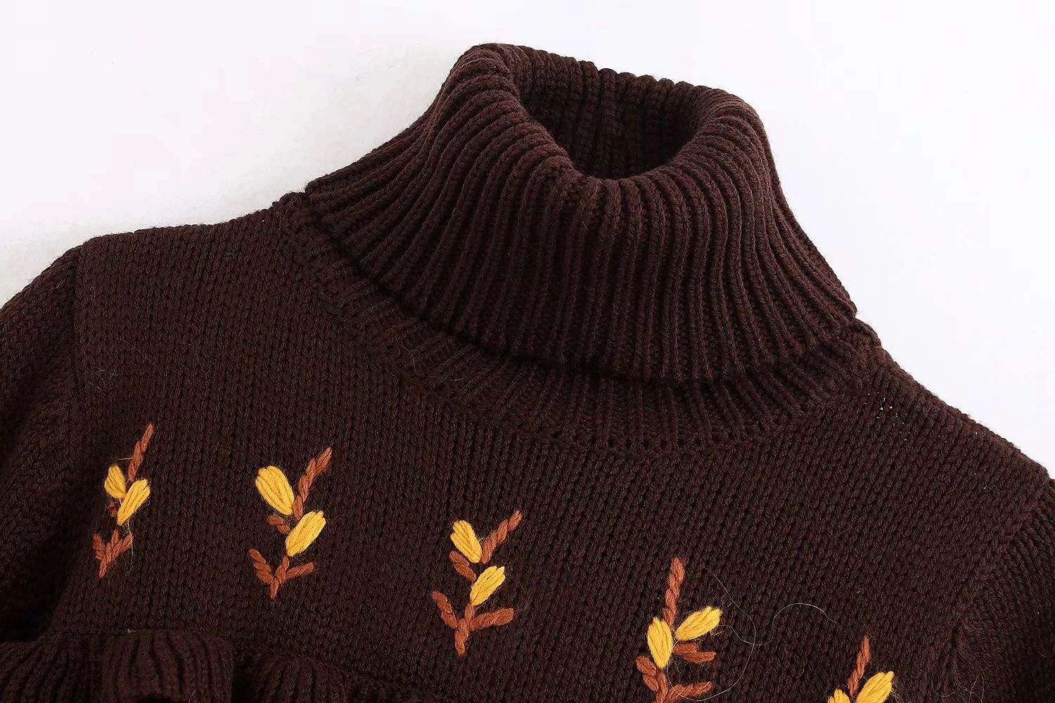 Женский винтажный свитер с длинным рукавом, вязаный пуловер с вышивкой и оборками, стильный джемпер, зима 2020