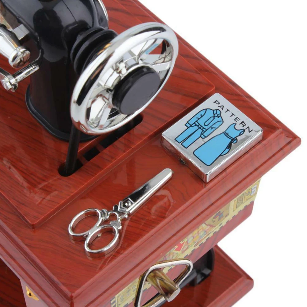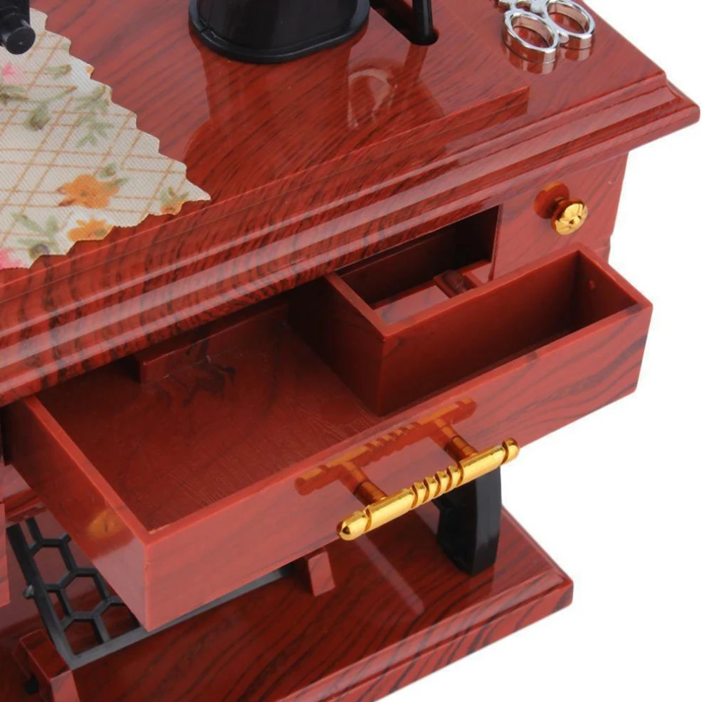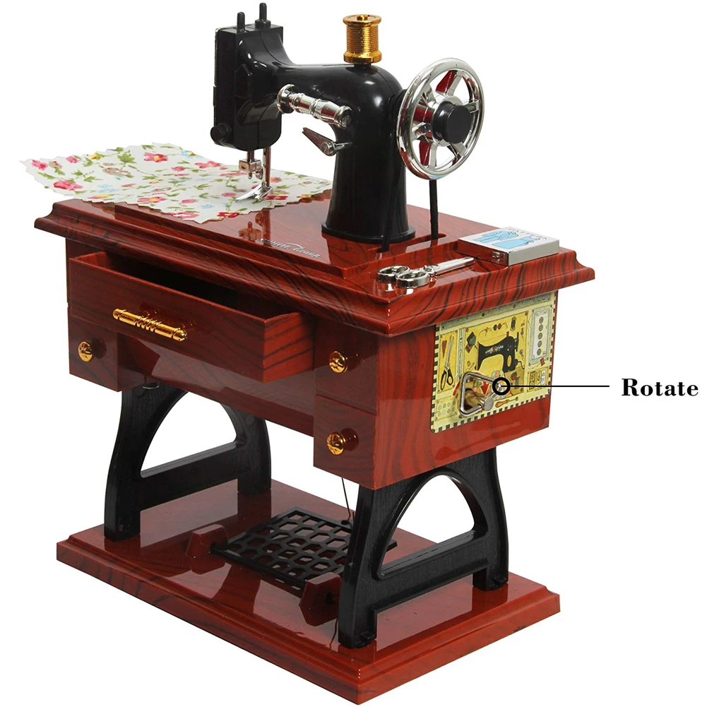 С звуком музыки, педали, колесо с кожаным ремешком и отверстие для иглы будут вращаться.