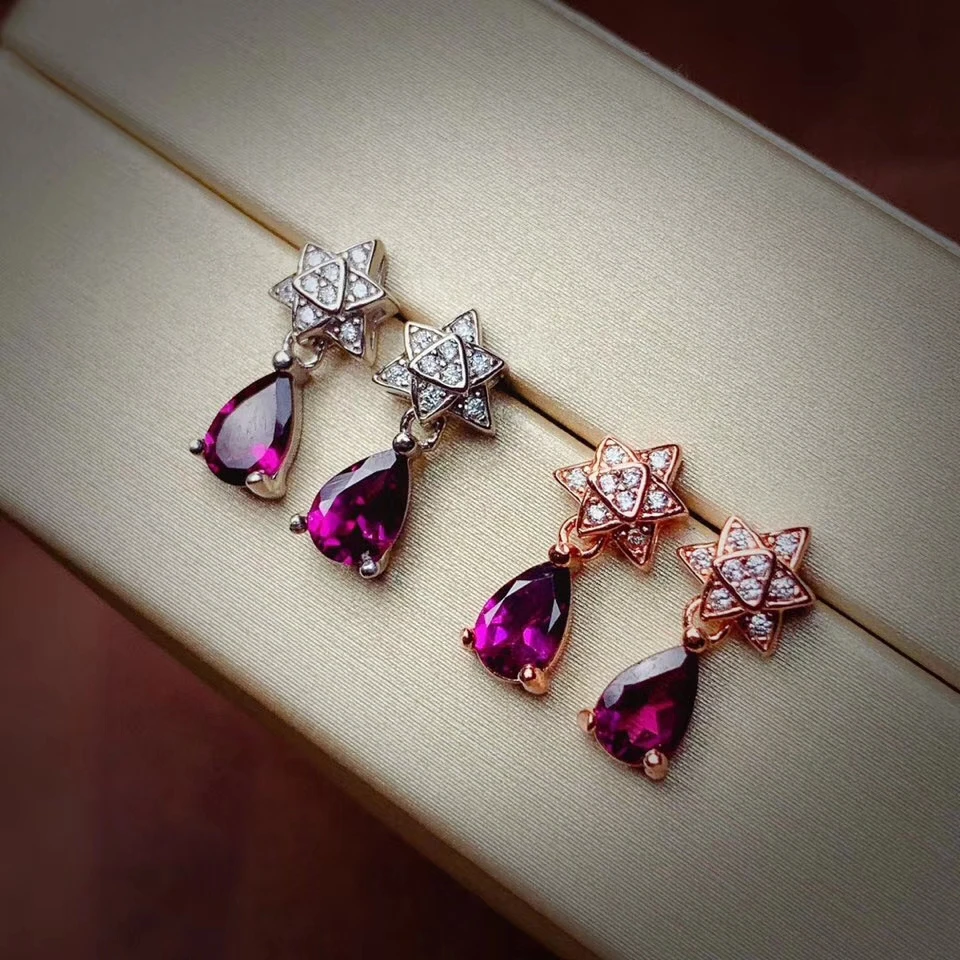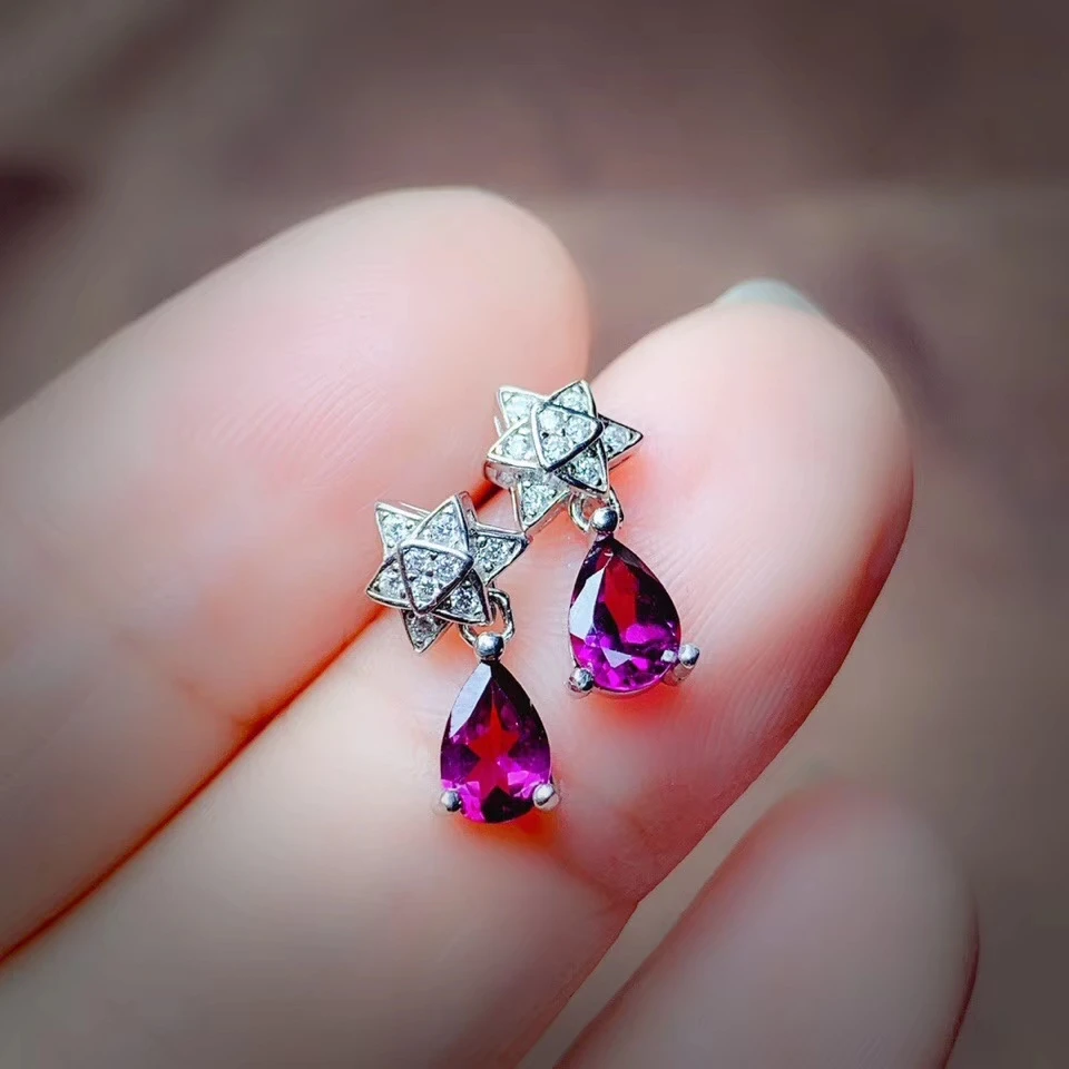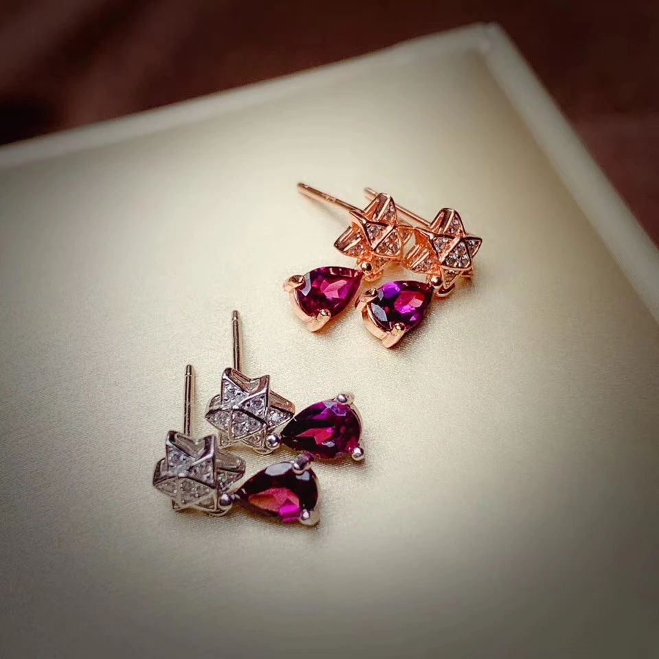 Главный драгоценный камень: натуральный гранат, Размер камня около: 4*6 мм, Тип металла: 925 пробы Серебряный, Боковой камень: циркон.