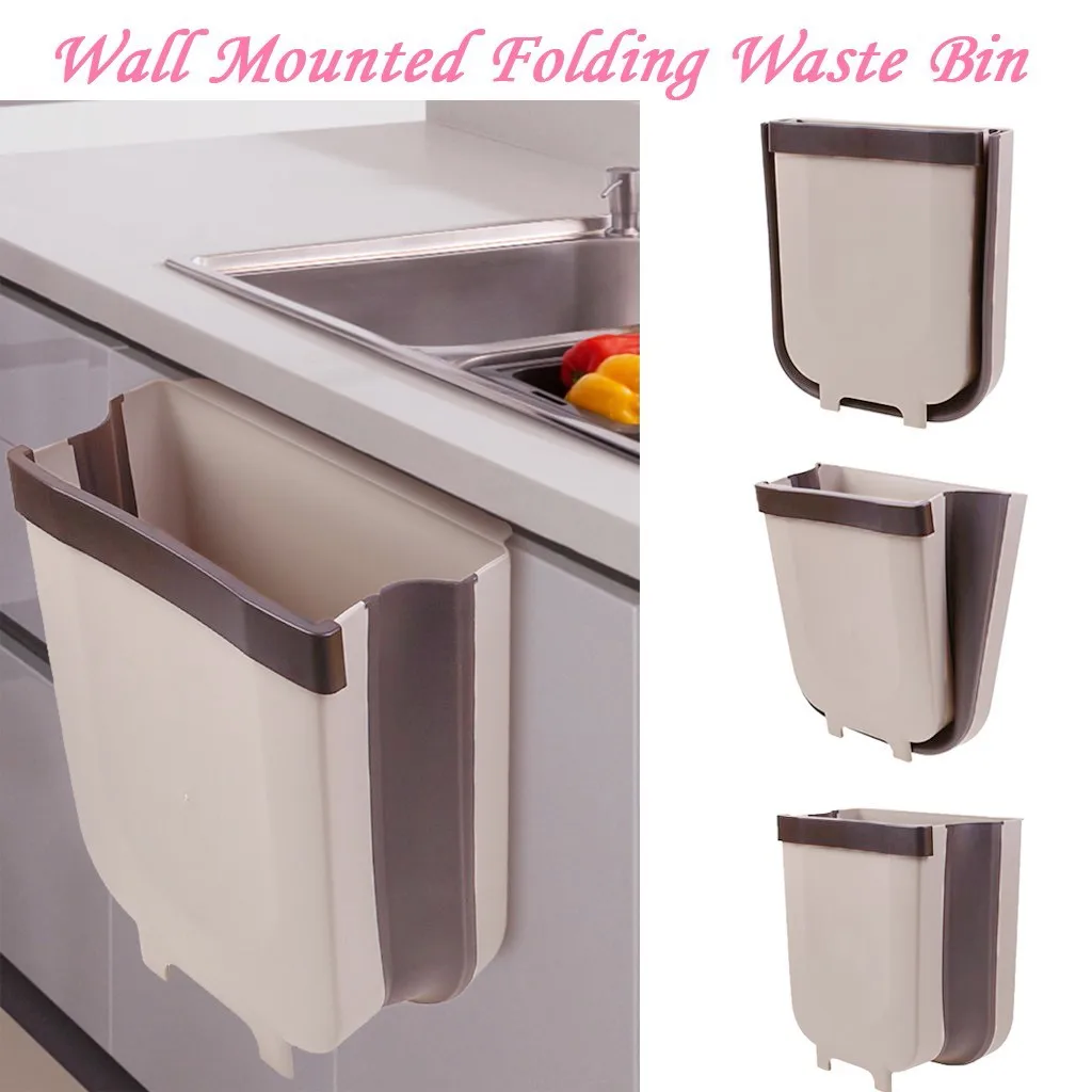 Настенный складной корзина для мусора Кухня двери шкафа висит мусорное ведро