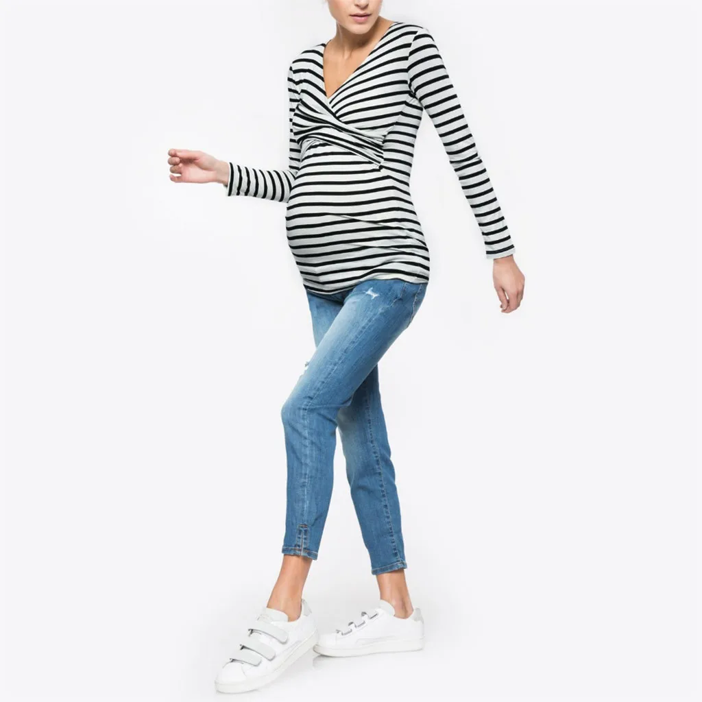 Женская блузка в полоску с длинными рукавами для беременных женщин