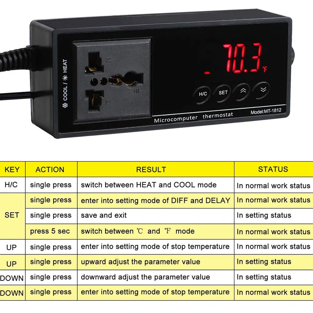 Точки пули: 1. Чувствительный зонд: контроллер температуры для аквариума под рептилию, внешний сверхчувствительный зонд. 2. Безопасность: задержка перепада температур защищает нагревательное оборудование и окружающую среду контроля температуры и имеет высокий огнестойкий стандарт, который эффективно предотвращает пожарные опасности. 3. Многофункциональность: высокая прочность, устойчивость к давлению, устойчивость к падению, устойчивость к трещинам и огнестойкий корпус. 4. Водонепроницаемый и антикоррозийный: Диапазон измерения: -40 ~ 100 °C; Диапазон контроля температуры: 16 ~ 40 °C; Температура хранения: -30 ~ 70 °C. 5. Что вы получите: 1 * термостат, 1 * руководство.